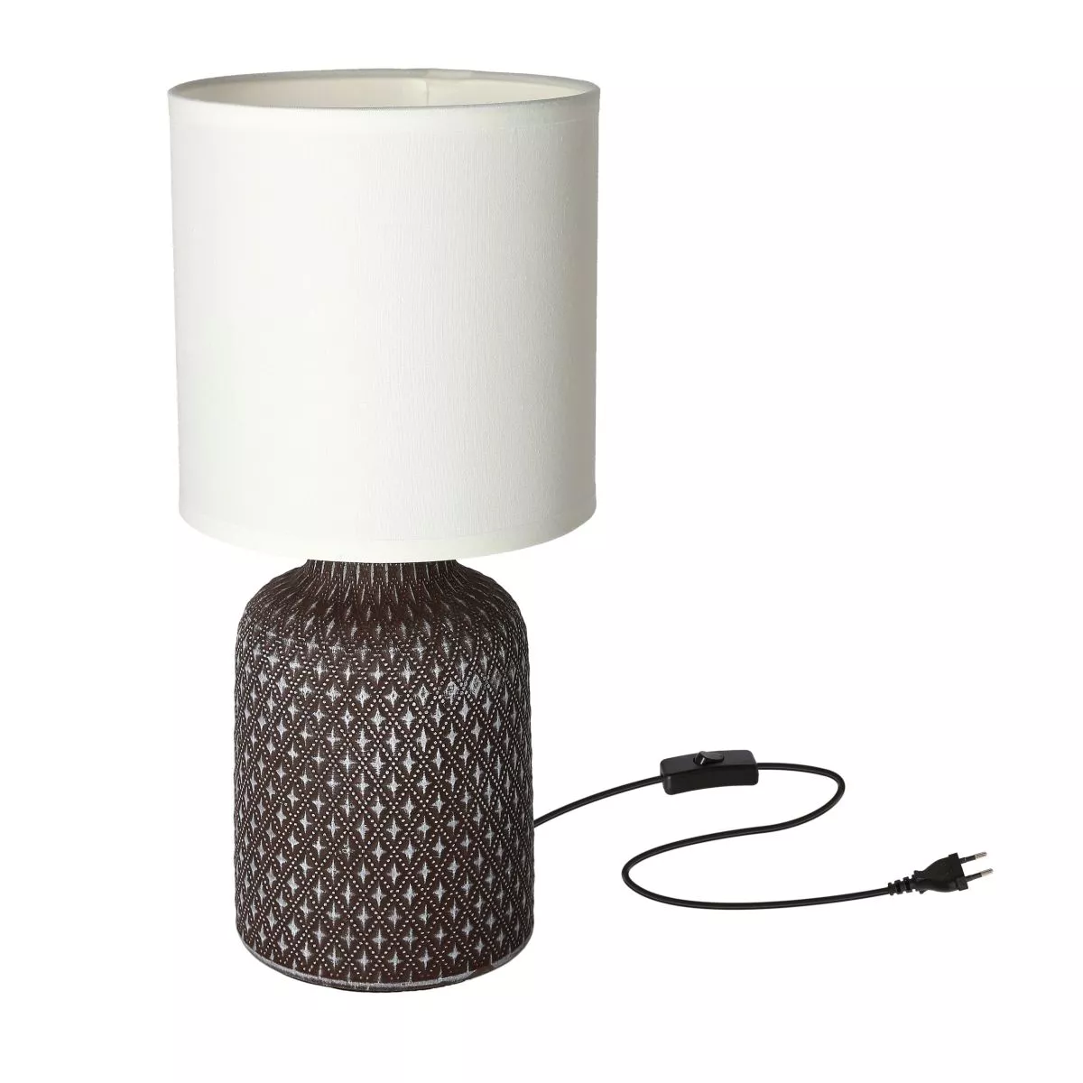 Vneste do svého interiéru příjemné tlumené světlo se stolní lampičkou INER, která skvěle poslouží v ložnici, obývacím pokoji i na komodě jako klidné doplňkové osvětlení! Keramická konstrukce v hnědém provedení působí jemně, zatímco stínidlo v bílé barvě vytváří harmonický, uklidňující efekt. Určeno pro žárovku s paticí E14 a maximálním výkonem 40 W. Pro úsporu el. energie doporučujeme osadit úspornou LED žárovkou. Krytí IP20 značí vhodnost použití v interiéru.