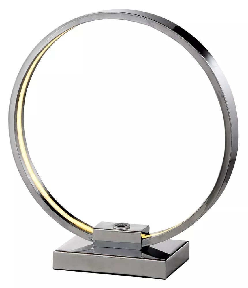 Stolní LED designová lampa CIRCLE - 9W, 3000K, (teplá bílá), chromovaná