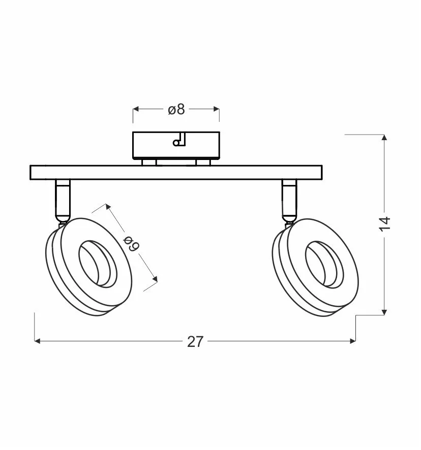LED nástěnné / stropní světlo THEMA je moderní osvětlení v lesklém chromovaném provedení. Svítidlo je osazeno 2 úspornými LED moduly o výkonu 5 W (celkem 2x5 W), které vyzařují příjemné teplé bílé světlo 3000 K. Z důvodu ochrany zraku je LED zdroj bezpečně ukryt pod plastovým stínidlem, čímž je eliminováno přímé oslnění. Klíčovou funkční vlastností je možnost regulace úhlu náklonu jednotlivých stínidel ve vertikálním i horizontálním směru, což umožňuje přesné nasměrování světla. Krytí IP20 značí vhodnost použití v interiéru.