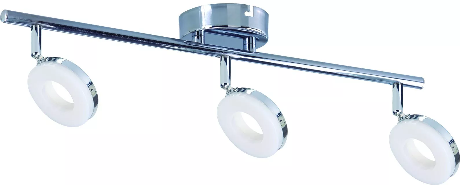 LED stropní svítidlo THEMA je moderní osvětlení v lesklém chromovaném provedení. Svítidlo je osazeno 3 úspornými LED moduly o výkonu 5 W (celkem 3x5 W), které vyzařují příjemné teplé bílé světlo 3000 K. Z důvodu ochrany zraku je LED zdroj bezpečně ukryt pod plastovým stínidlem, čímž je eliminováno přímé oslnění. Klíčovou funkční vlastností je možnost regulace úhlu náklonu jednotlivých stínidel ve vertikálním i horizontálním směru, což umožňuje přesné nasměrování světla. Krytí IP20 značí vhodnost použití v interiéru.