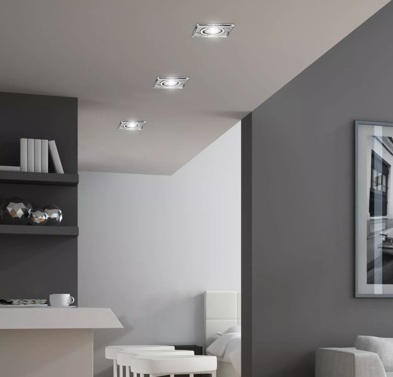 Vestavné stropní LED svítidlo CATHLAMET přináší jednoduchý a elegantní design s vysokou funkčností. Čtvercová konstrukce v chromovaném provedení je doplněna LED modulem s integrovaným bílým světlem a paticí GU10 pro klasickou žárovku, což umožňuje volbu mezi standardním a dekorativním osvětlením. Svítidlo je vhodné do interiérů, kde chcete kombinovat běžné osvětlení s atmosférickým světlem — například v obývacím pokoji, ložnici nebo relaxačním koutě. Určeno pro žárovku typu GU10 o maximálním příkonu 50W. Krytí IP20 značí vhodnost použití v interiéru.