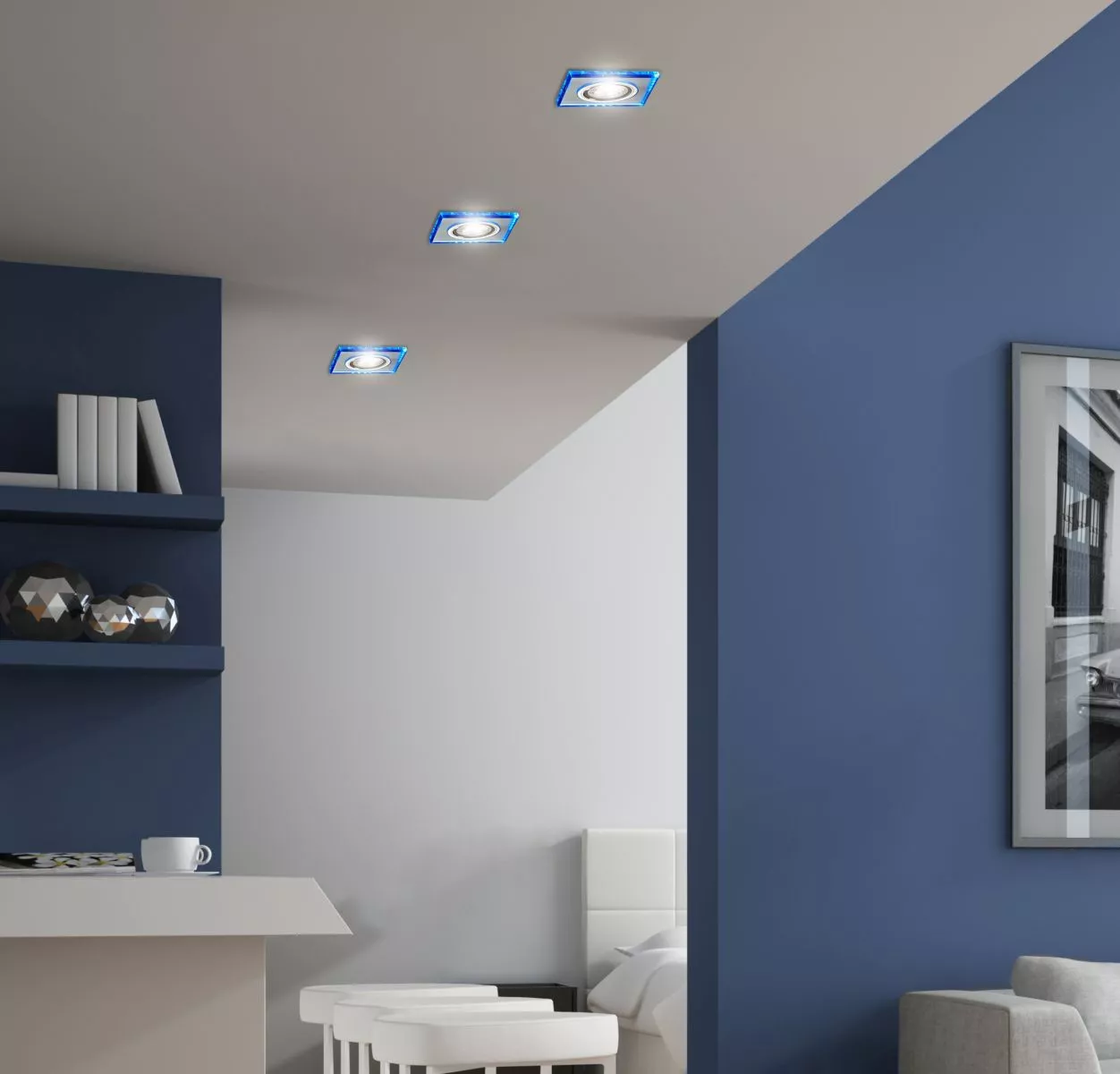 Vestavné stropní LED svítidlo CATHLAMET přináší jednoduchý a elegantní design s vysokou funkčností. Čtvercová konstrukce v chromovaném provedení je doplněna LED modulem s integrovaným modrým světlem a paticí GU10 pro klasickou žárovku, což umožňuje volbu mezi standardním a dekorativním osvětlením. Svítidlo je vhodné do interiérů, kde chcete kombinovat běžné osvětlení s atmosférickým světlem — například v obývacím pokoji, ložnici nebo relaxačním koutě. Určeno pro žárovku typu GU10 o maximálním příkonu 50W. Krytí IP20 značí vhodnost použití v interiéru.