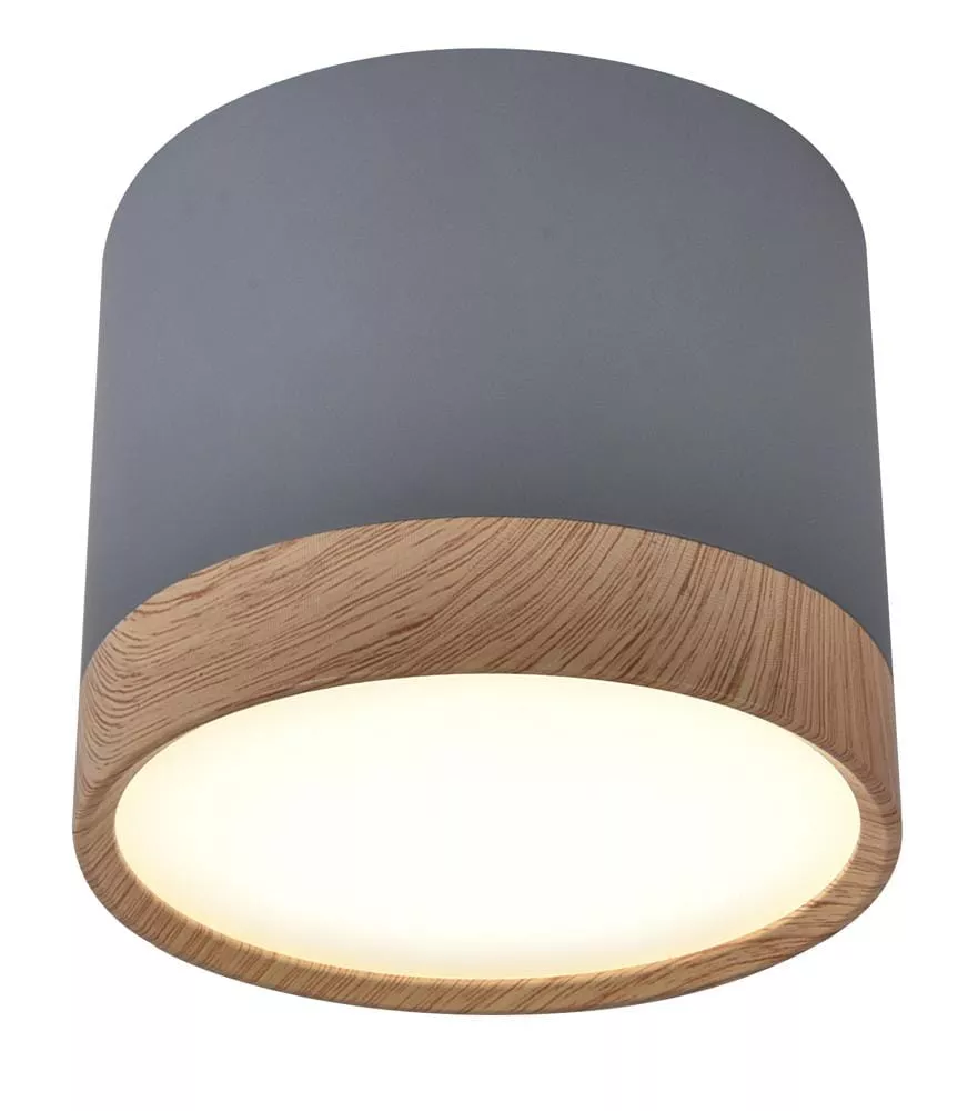 LED stropní světlo TUBA - 9W, 4000K (neutrální bílá), 7,5x8,8cm, kulaté, imitace dřeva / šedé
