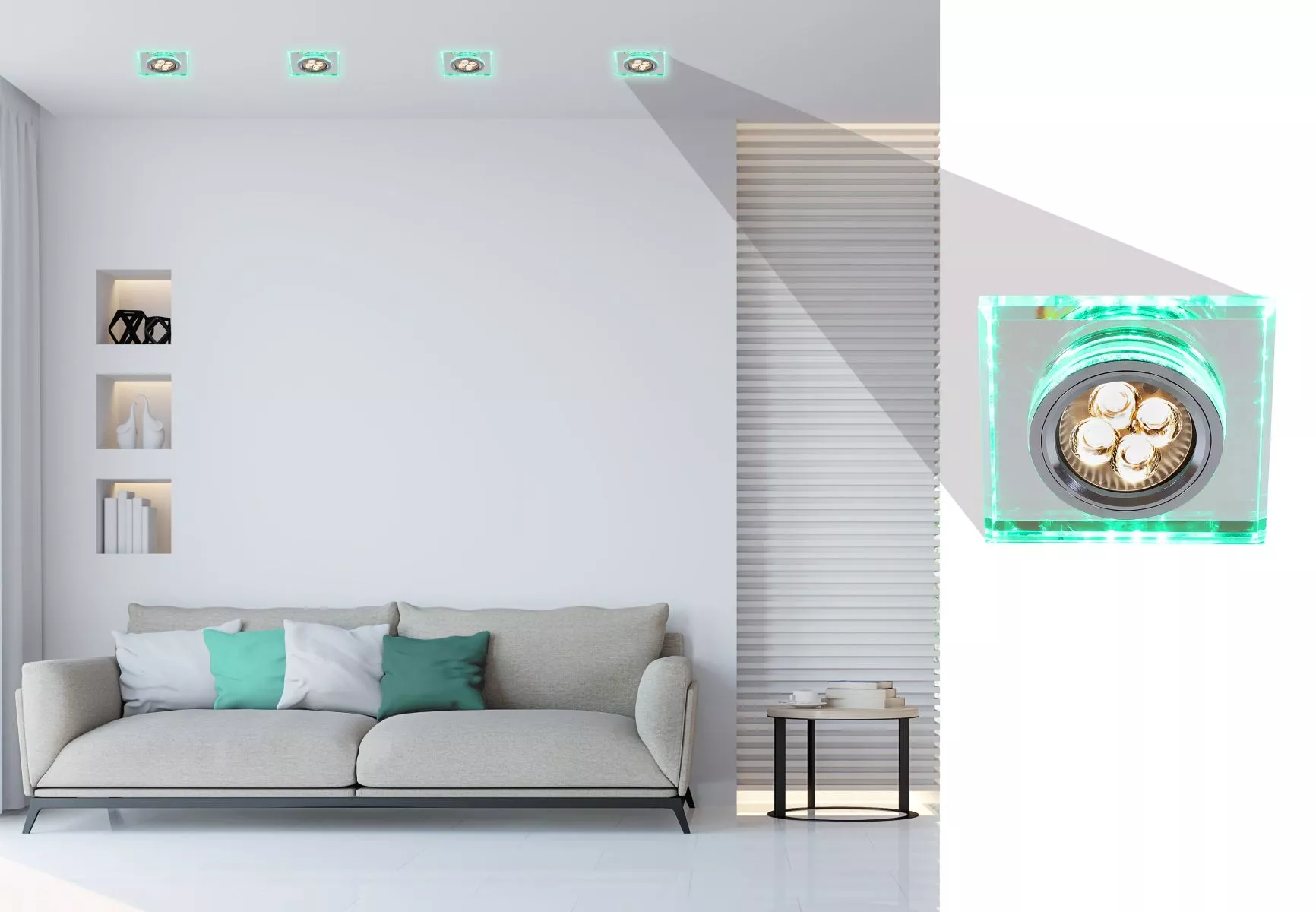 Vestavné stropní LED svítidlo CATHLAMET - 1xGU10, 50W + LED 2,1W, zelené světlo