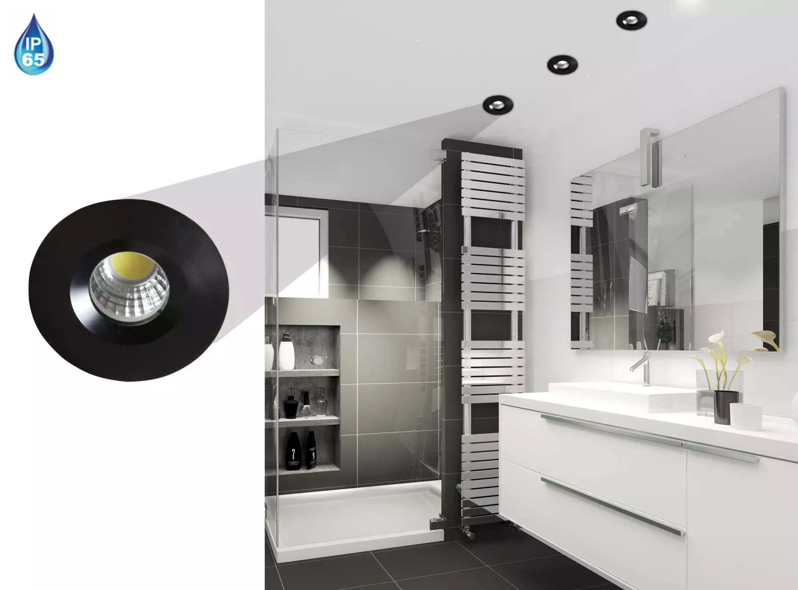 Koupelnové LED svítidlo DERYL 11 je kompaktní zapuštěné řešení vhodné do prostor se zvýšenou vlhkostí. Černá kulatá konstrukce s krytím IP65 odolává stříkající vodě, takže může být použitá i v zónách blízko sprchy nebo vany. Vestavná montáž ponechá strop vizuálně čistý. Studená bílá barva 6500 K poskytuje jasné světlo vhodné nad zrcadlo, technické místnosti či toaletu.