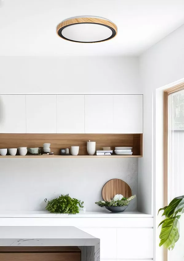 Proměňte interiér pomocí stropního svítidla AFLO! Kovová konstrukce v černé barvě je doplněná dekorem dřeva, což dodává svítidlu moderní i přírodní charakter, bílý difuzor uprostřed rozptyluje světlo rovnoměrně do celého prostoru. Hodí se do kuchyně, pracovny i obývacího pokoje, kde poskytne jasné a plné osvětlení bez rušivých stínů. Teplota světla je volitelná v rozsahu 3000 K / 4000 K / 6000 K, díky čemuž lze snadno přepínat mezi teplým světlem pro večerní relax, neutrálním denním světlem i studeným bílým světlem pro práci a soustředění. Krytí IP20 značí vhodnost použití v interiéru.