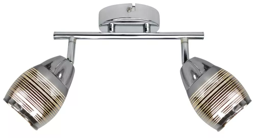 Vneste do svého interiéru moderní lesk s bodovým svítidlem MILTON! Chromovaná konstrukce v kombinaci se skleněnými stínidly s jemnými vodorovnými liniemi působí elegantně a po rozsvícení vytváří působivý zrcadlový efekt. Skvěle se hodí do obývacího pokoje, ložnice i předsíně, kde pootočíte stínidla a snadno upravíte úhel svitu svisle i vodorovně. Určeno pro 2 LED žárovky s paticí E14 a maximálním výkonem 10 W. Krytí IP20 značí vhodnost použití v interiéru.