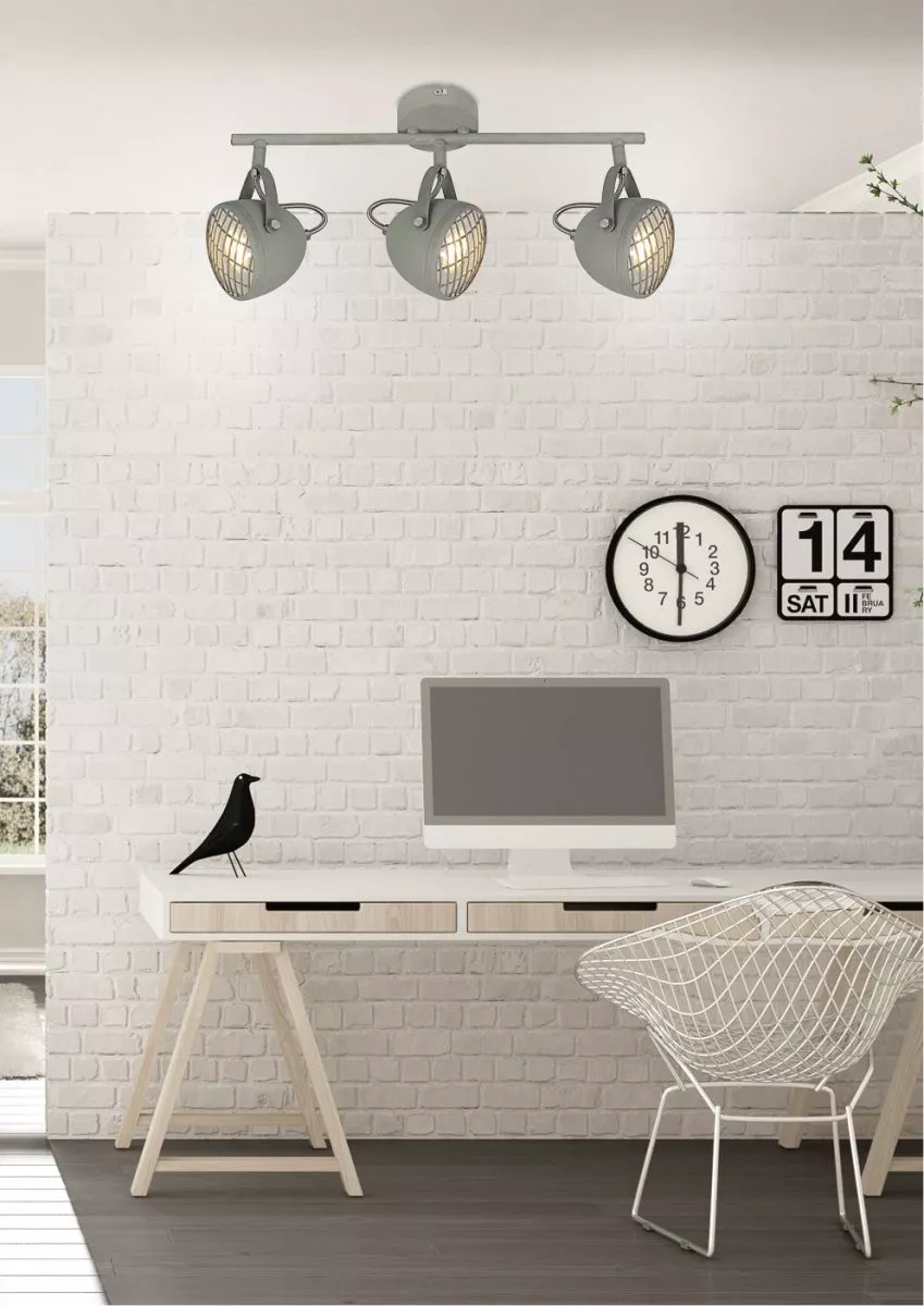 Dodejte svému interiéru industriální charakter se stropním bodovým svítidlem PENT! Konstrukce v tlumeném šedém odstínu imitujícím beton působí moderně a surově, zatímco kovová stínidla s dekorativní mřížkou dodávají svítidlu osobitý loftový vzhled. Ideální do obývacího pokoje, pracovny i předsíně, kde pootočíte stínidla a snadno upravíte směr svitu ve 2 rovinách. Určeno pro 3 žárovky s paticí GU10 a maximálním výkonem 50 W. Pro úsporu el. energie doporučujeme osadit úspornou LED žárovkou. Krytí IP20 značí vhodnost použití v interiéru.