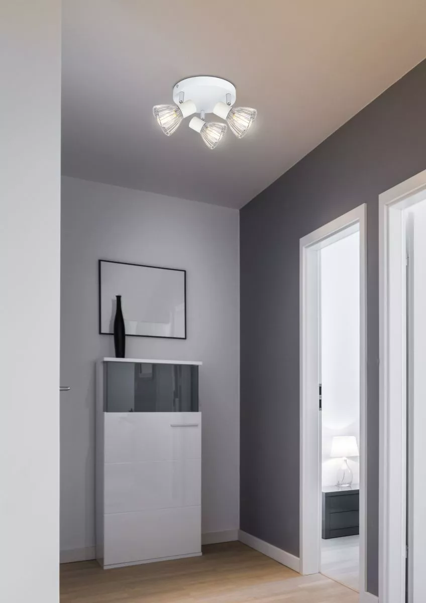Objevte eleganci se stropním bodovým svítidlem FLY! Konstrukce v bílé barvě s chromovanými detaily a jemně perforovanými stínidly zajišťuje maximální využití výkonu světelného zdroje a vytváří příjemnou, rovnoměrně rozptýlenou atmosféru světla. Skvěle doplní ložnici, obývací pokoj i chodbu, kde díky nastavitelnému úhlu stínidel můžete přesně nasměrovat svit. Určeno pro 3 žárovky s paticí E14 a maximálním výkonem 40 W. Pro úsporu el. energie doporučujeme osadit úspornou LED žárovkou. Krytí IP20 značí vhodnost použití v interiéru.