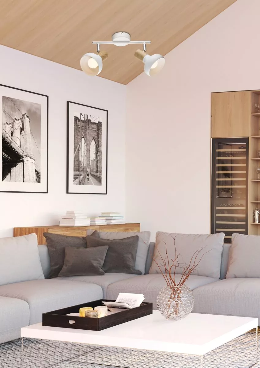 Vneste do svého interiéru přírodní harmonii s bodovým světlem PUERTO! Konstrukce v čistém kovovém provedení doplněná dekorativními prvky s efektem dřeva působí jemně, útulně a nese výrazný skandinávský nádech. Skvěle zapadne do obývacího pokoje, ložnice i předsíně, kde pootočíte stínidla a snadno upravíte úhel svitu podle potřeby. Určeno pro 2 žárovky s paticí E14 a maximálním výkonem 40 W. Pro úsporu el. energie doporučujeme osadit úspornou LED žárovkou. Krytí IP20 značí vhodnost použití v interiéru.