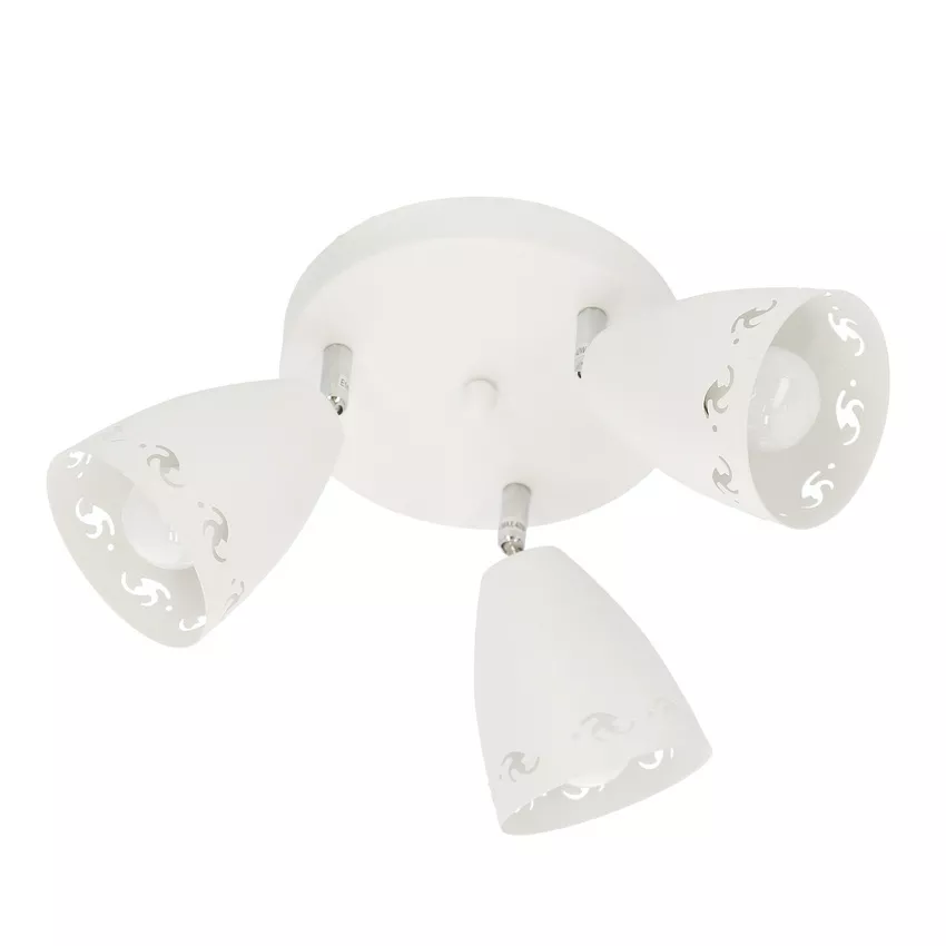 Zvýrazněte svůj interiér moderním bodovým svítidlem COTY! Konstrukce v bílém provedení s ozdobnými výřezy na okrajích stínidel vytváří originální světelné efekty a přináší sofistikovanou atmosféru světla. Skvěle doplní obývací pokoj, ložnici i pracovnu, kde pootočíte stínidla a snadno upravíte úhel svitu svisle i vodorovně. Určeno pro 3 žárovky s paticí E14 a maximálním výkonem 40 W. Pro úsporu el. energie doporučujeme osadit úspornou LED žárovkou. Krytí IP20 značí vhodnost použití v interiéru.