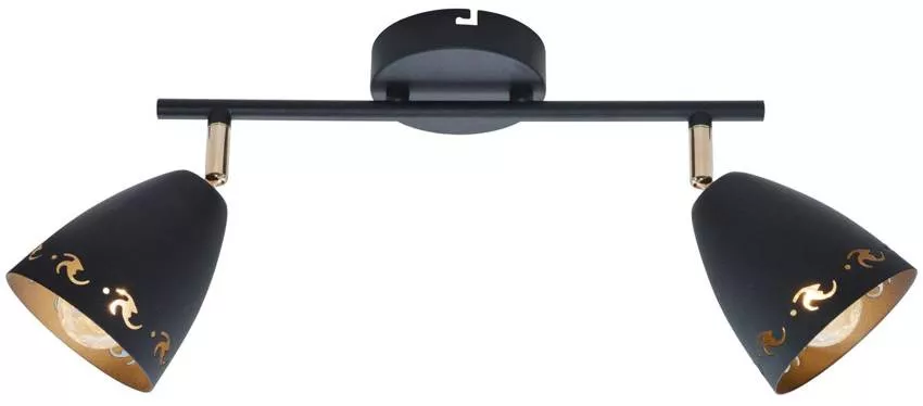 Zvýrazněte svůj interiér moderním bodovým svítidlem COTY! Konstrukce v černém provedení s ozdobnými výřezy na okrajích stínidel vytváří originální světelné efekty a přináší sofistikovanou atmosféru světla. Skvěle doplní obývací pokoj, ložnici i pracovnu, kde pootočíte stínidla a snadno upravíte úhel svitu svisle i vodorovně. Určeno pro 2 žárovky s paticí E14 a maximálním výkonem 40 W. Pro úsporu el. energie doporučujeme osadit úspornou LED žárovkou. Krytí IP20 značí vhodnost použití v interiéru.