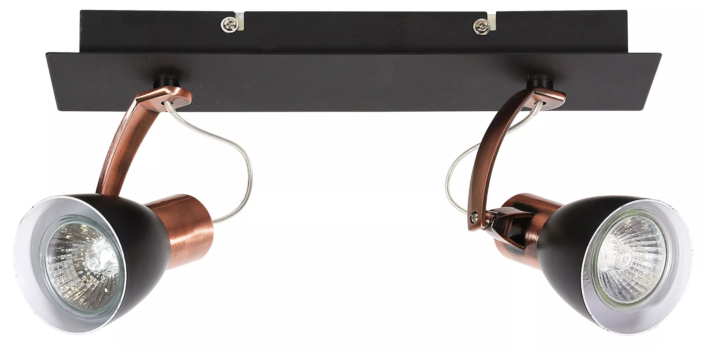 Nástěnné / stropní bodové světlo MARKUS - 2xGU10, 50W, černé / měděné