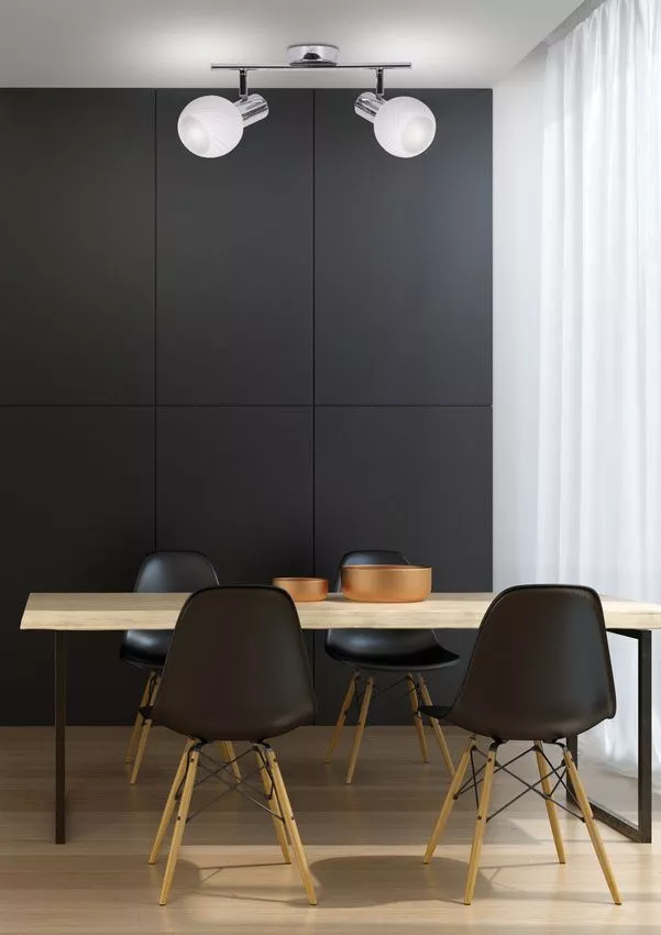 Bodové svítidlo TURNO oslní chromovanou kovovou konstrukcí doplněnou jemnými bílými stínidly, která propůjčují svítidlu moderní, odlehčený vzhled. Skvěle doplní ložnici, obývací pokoj i chodbu, kde díky nastavitelnému úhlu stínidel můžete přesně nasměrovat světelné zdroje. Určeno pro 2 žárovky s paticí E14 a maximálním výkonem 40 W. Pro úsporu elektrické energie doporučujeme osadit úspornou LED žárovkou. Krytí IP20 značí vhodnost použití v interiéru.