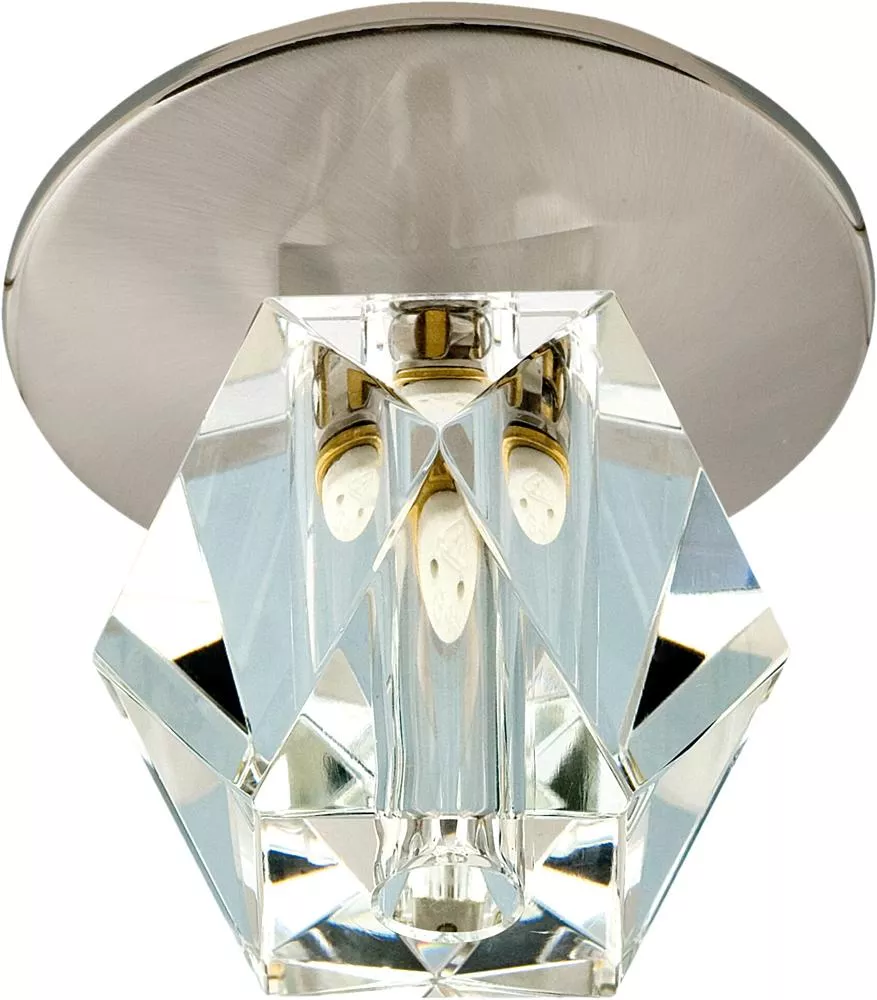Stropní podhledové bodové osvětlení HAINES přináší světlý detail, který lze nenápadně zapustit do stropní plochy a nerozrušuje interiér. Konstrukce s chromovaným povrchem a skleněným křišťálovým stínidlem ve tvaru diamantu dodává interiéru eleganci a zajímavý světelný efekt. Svítidlo je vhodné do chodeb, předsíní, obývacích pokojů nebo ložnic, kde slouží jako diskrétní bodové světlo s decentním světelným akcentem. Určeno pro žárovku typu G4 o maximálním příkonu 20 W. Pro úsporu el. energie doporučujeme osadit úspornou LED žárovkou. Krytí IP20 značí vhodnost použití v interiéru.
