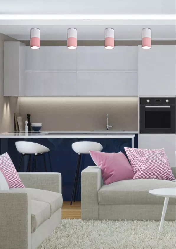 Stropní skandinávské osvětlení TUBA - 1xGU10, 50W, 5,8x12cm, kulaté, bílé / růžové