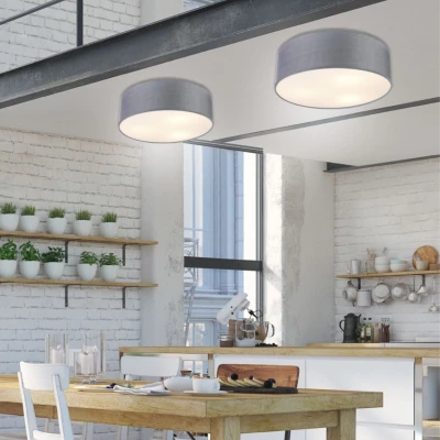 Zvolte stropní svítidlo GLOVEN, které ve své jednoduchosti představuje ztělesnění elegance a hřejivého stylu. Kruhové stínidlo je tvořeno šedou textilií, která je z vnitřní strany vyztužena PVC pro udržení tvaru, a je zespodu uzavřena plastovým krytem. Toto řešení zajišťuje měkké a rovnoměrné rozptýlení světla a zaručuje, že svítidlo bude dominantním prvkem v každém obývacím pokoji nebo ložnici. Svítidlo o průměru 30 cm je vybaveno 3 paticemi E27 pro žárovky s maximálním výkonem 40 W. Pro úsporu el. energie doporučujeme osadit úspornou LED žárovkou. Krytí IP20 značí vhodnost použití v interiéru.