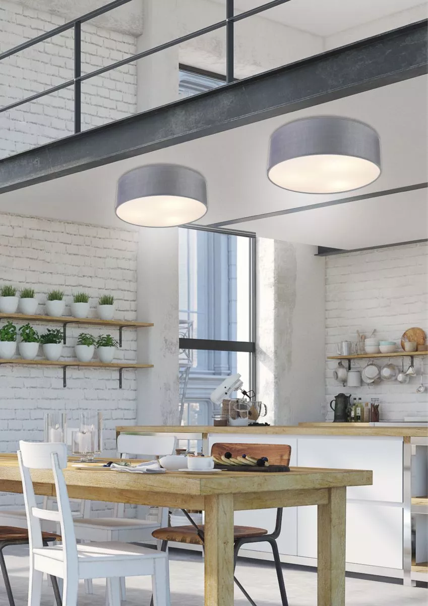Zvolte stropní svítidlo GLOVEN, které ve své jednoduchosti představuje ztělesnění elegance a hřejivého stylu. Kruhové stínidlo je tvořeno šedou textilií, která je z vnitřní strany vyztužena PVC pro udržení tvaru, a je zespodu uzavřena plastovým krytem. Toto řešení zajišťuje měkké a rovnoměrné rozptýlení světla a zaručuje, že svítidlo bude dominantním prvkem v každém obývacím pokoji nebo ložnici. Svítidlo o průměru 50 cm je vybaveno 3 paticemi E27 pro žárovky s maximálním výkonem 40 W. Pro úsporu el. energie doporučujeme osadit úspornou LED žárovkou. Krytí IP20 značí vhodnost použití v interiéru.