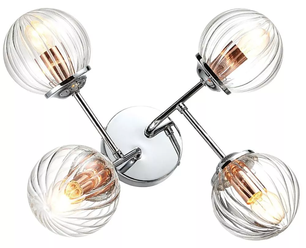 Vytvořte svému domovu moderní nádech se stropním osvětlením BEST! Chromovaná konstrukce zajímavého tvaru je doplněná průhlednými stínidly s jemným dekorem, čímž vzniká čistý a elegantní vzhled. Hodí se do předsíně, chodby nebo obývacího pokoje jako stylové hlavní světlo. Určeno pro 4 žárovky s paticí E14 a maximálním výkonem 40 W. Pro úsporu el. energie doporučujeme osadit úspornou LED žárovkou. Krytí IP20 značí vhodnost použití v interiéru.