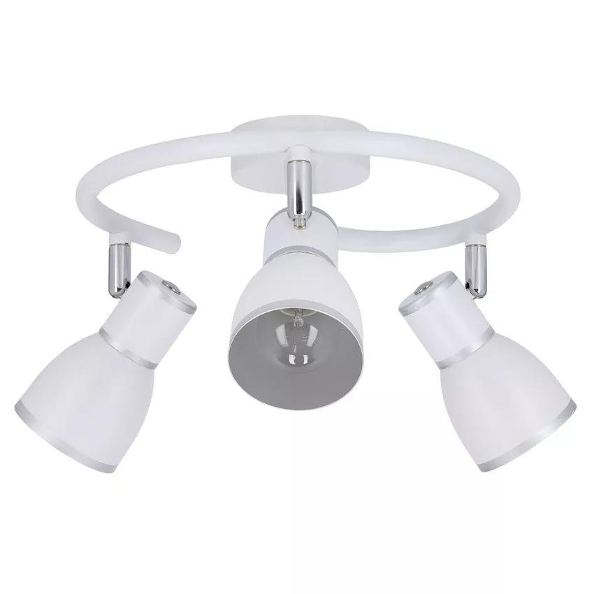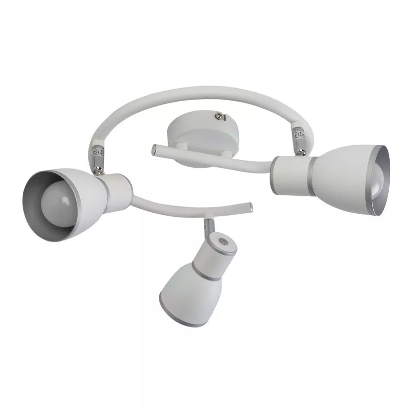 Projasněte svůj domov stropním bodovým svítidlem FIDO! Konstrukce v bílé barvě se saténově stříbrnými proužky působí nadčasově a elegantně, zatímco celokovová stínidla vytvářejí jemně rozptýlené, příjemné světlo. Skvěle se hodí do obývacího pokoje, ložnice i kuchyně, kde pootočíte stínidla a snadno upravíte úhel svitu podle potřeby. Určeno pro 3 žárovky s paticí E14 a maximálním výkonem 40 W. Pro úsporu el. energie doporučujeme osadit úspornou LED žárovkou. Krytí IP20 značí vhodnost použití v interiéru.