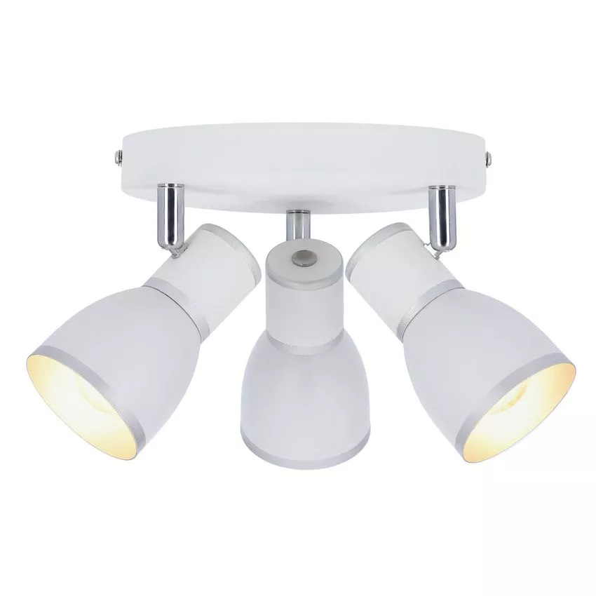 Projasněte svůj domov stropním bodovým svítidlem FIDO! Konstrukce v bílé barvě se saténově stříbrnými proužky působí nadčasově a elegantně, zatímco celokovová stínidla vytvářejí jemně rozptýlené, příjemné světlo. Skvěle se hodí do obývacího pokoje, ložnice i kuchyně, kde pootočíte stínidla a snadno upravíte úhel svitu podle potřeby. Určeno pro 3 žárovky s paticí E14 a maximálním výkonem 40 W. Pro úsporu el. energie doporučujeme osadit úspornou LED žárovkou. Krytí IP20 značí vhodnost použití v interiéru.