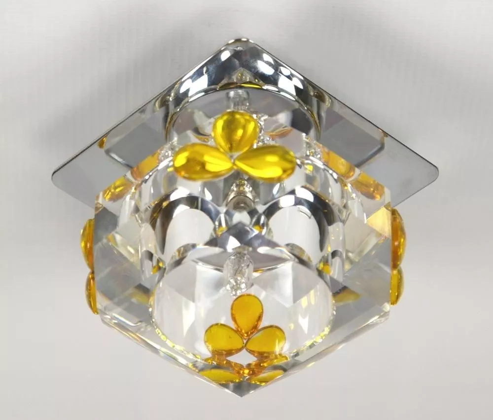 Stropní vestavné svítidlo KECHICAN přináší možnost nasvítit konkrétní kout místnosti přesně tam, kde to potřebujete. Konstrukce v chromovaném provedení doplněná skleněným žlutým stínidlem ve tvaru kostky s efektem lomeného světla vytváří decentní světelný efekt. Svítidlo dobře poslouží v chodbách, předsíních nebo menších místnostech, kde poskytne kvalitní bodové světlo. Určeno pro žárovku typu G4 o maximálním příkonu 20 W. Pro úsporu el. energie doporučujeme osadit úspornou LED žárovkou. Krytí IP20 značí vhodnost použití v interiéru.