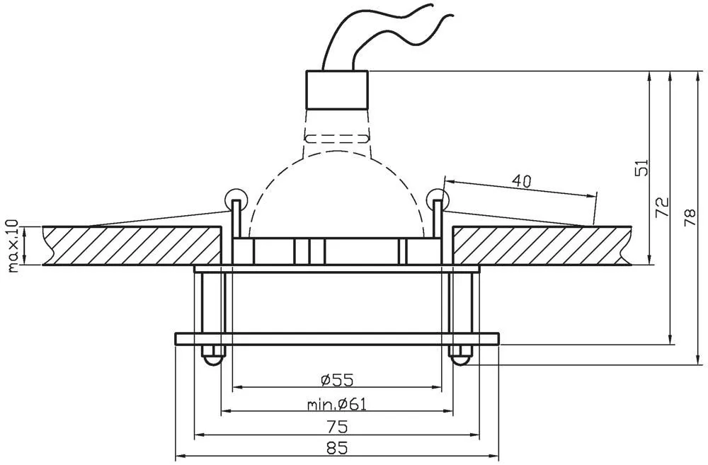 - Montážní otvor (mm)