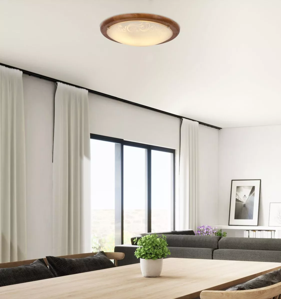 Zvolte přisazené svítidlo HERBA, které mistrně kombinuje teplo přírodního dubového dřeva s vynikající funkčností a nadčasovým stylem. Svítidlo o průměru 38 cm s elegantním dřevěným rámem se skvěle hodí do moderních i klasických interiérů, kterým dodá útulný a jedinečný charakter. Díky rovnoměrnému rozptýlení světla je ideální jako hlavní osvětlení do obývacího pokoje, ložnice nebo jídelny. Určeno pro žárovku s paticí E27 a maximálním výkonem 60 W. Pro úsporu el. energie doporučujeme osadit úspornou LED žárovkou. Krytí IP20 značí vhodnost použití v interiéru.