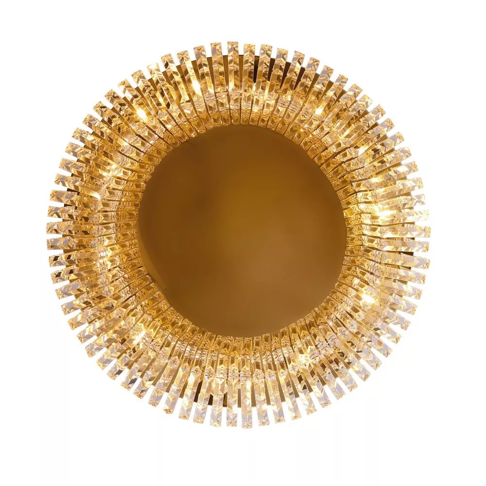 Stropní moderní osvětlení MARANGA je luxusní svítidlo, které se stane dominantou moderního interiéru. Svítidlo je provedeno ve zlaté barvě a je bohatě dekorováno čirými krystaly, které zajišťují oslnivý lesk a jedinečnou hru světla. Díky velkému počtu žárovek svítidlo poskytuje intenzivní a velkolepé osvětlení, ideální pro obývací pokoje, jídelny nebo reprezentativní haly. Je určeno pro 10 žárovek s paticí E14 a maximálním výkonem 10 W. Pro úsporu el. energie doporučujeme osadit úspornou LED žárovkou. Krytí IP20 značí vhodnost použití v interiéru.