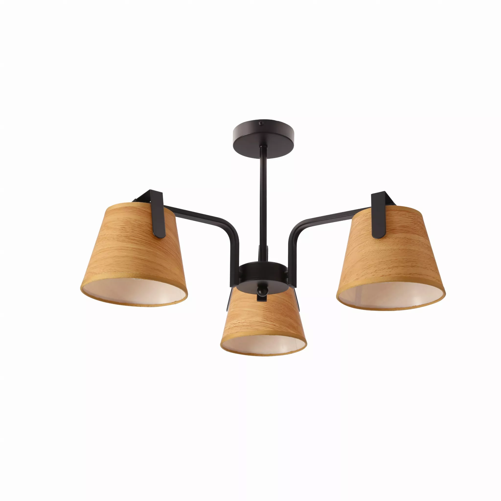 Stropní svítidlo AMBERG působí hřejivě a přirozeně díky kombinaci černé kovové konstrukce a 3 stínidel v dekoru dřeva, která při rozsvícení vytváří měkký zlatavý tón a dodávají prostoru útulnou atmosféru. Vhodné je do obývacího pokoje, ložnice i jídelny, kde poskytne vyvážené osvětlení. Světlo je určeno pro 3 žárovky s paticí E14 s maximálním příkonem 40 W. Pro úsporu el. energie doporučujeme osadit úspornou LED žárovkou. Krytí IP20 značí vhodnost použití v interiéru.