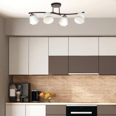 Dodejte svému interiéru styl se stropním svítidlem GRECO, které mistrně kombinuje moderní design s klasickou elegancí. Ramena nesou klasická bílá stínidla a vytváří harmonickou a stylovou kompozici. Konstrukce svítidla je provedeno v efektní černo-zlaté barvě, která dodá interiéru luxusní a výrazný charakter. Svítidlo je ideální pro hlavní osvětlení v obývacím pokoji, jídelně nebo ložnici. Určeno pro 4 žárovky s paticí E27 a maximálním výkonem 40 W. Pro úsporu el. energie doporučujeme osadit úspornou LED žárovkou. Krytí IP20 značí vhodnost použití v interiéru.