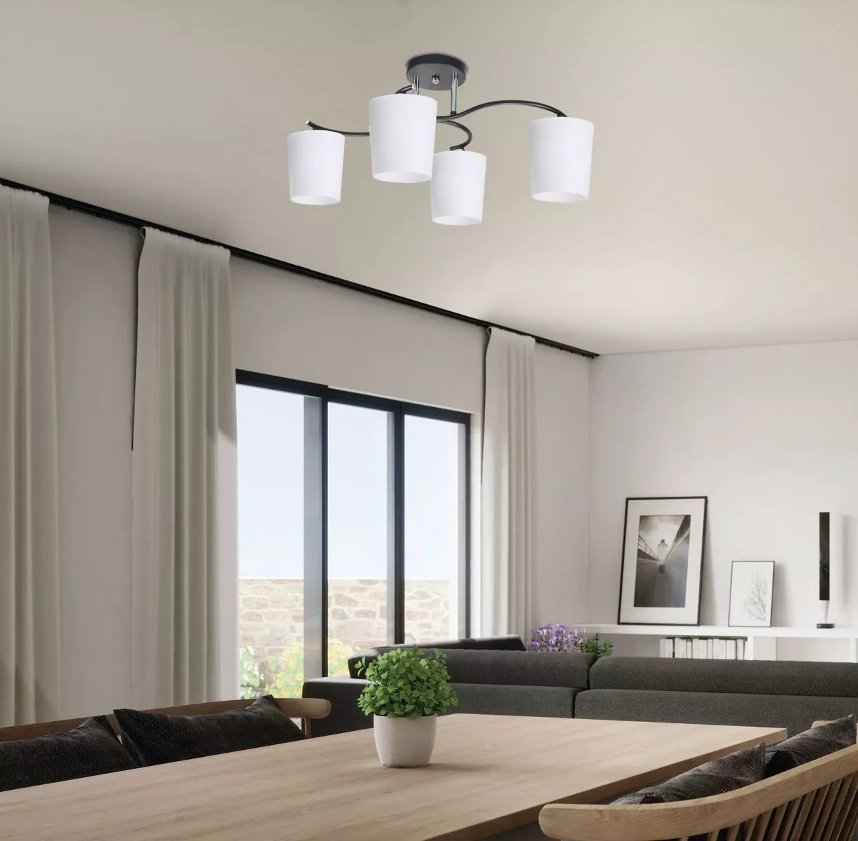 Oživte svůj interiér s moderním stropním svítidlem ESNYR, které zaujme kontrastní kombinací chromu, černé a bílé barvy. 4 ramena, vycházející z chromované konstrukce, nesou kulatá bílá stínidla, která vytváří dynamický a vyvážený celek. Svítidlo je ideální jako hlavní osvětlení do obývacích pokojů, ložnic nebo větších předsíní, kde zajišťuje dostatečný a rovnoměrný jas. Určeno pro 4 žárovky s paticí E27 a maximálním výkonem 40 W. Pro úsporu el. energie doporučujeme osadit úspornou LED žárovkou. Krytí IP20 značí vhodnost použití v interiéru.