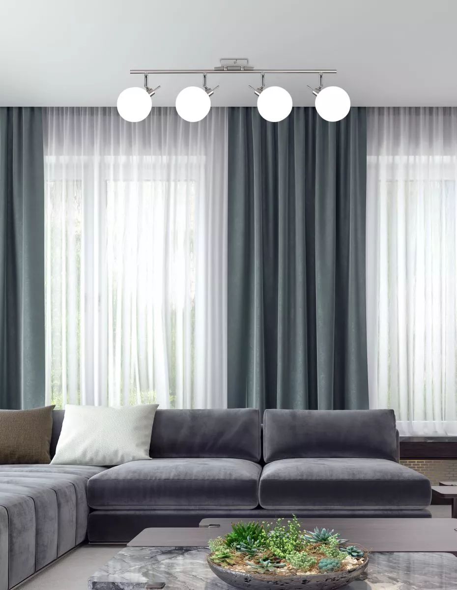 Bodové stropní moderní svítidlo GHOST oslní saténově stříbrnou kovovou konstrukcí doplněnou výraznými bílými stínidly, která propůjčují svítidlu moderní, odlehčený vzhled. Skvěle doplní ložnici, obývací pokoj i chodbu, kde díky nastavitelnému úhlu stínidel můžete přesně nasměrovat světelné zdroje. Určeno pro 4 žárovky s paticí G9 a maximálním výkonem 40 W. Pro úsporu elektrické energie doporučujeme osadit úspornou LED žárovkou. Krytí IP20 značí vhodnost použití v interiéru.