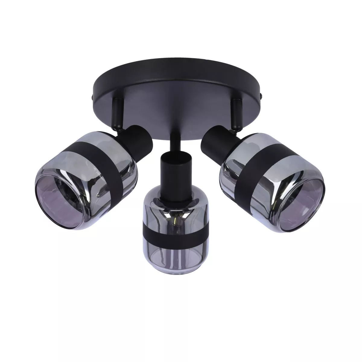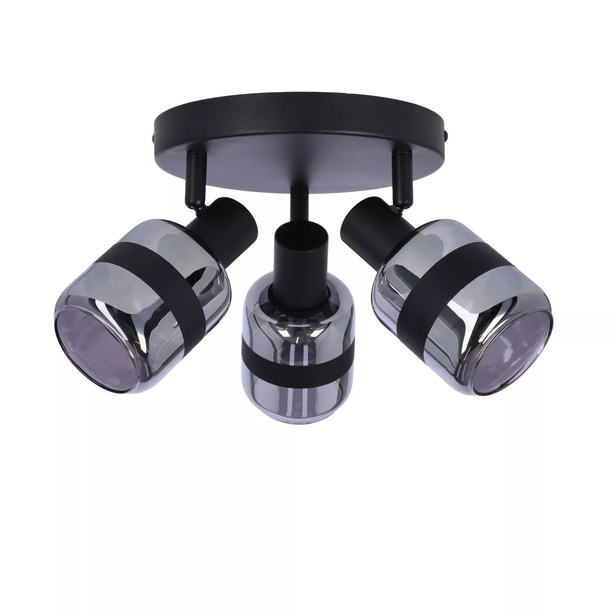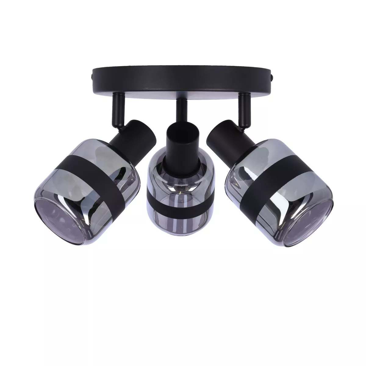 Stropní bodové svítidlo YUKI - 3xE14, 15W, černé / kouřové sklo