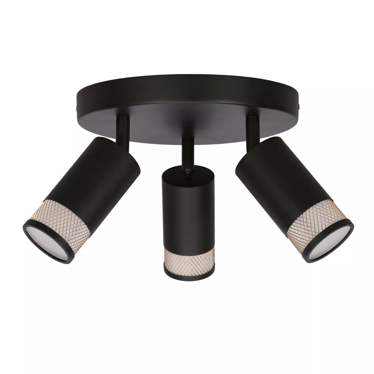 Oživte svůj interiér stropním bodovým svítidlem FLIN! Konstrukce v černém provedení se stínidly se zlatým vnitřkem a jemnou kovovou mřížkou působí elegantně a přináší do prostoru teplé, atmosférické světlo s industriálním nádechem. Perfektně se hodí do obývacího pokoje, ložnice i chodby, kde díky flexibilním stínidlům snadno upravíte úhel svitu podle potřeby. Určeno pro 3 žárovky s paticí GU10 a maximálním výkonem 15 W. Pro úsporu el. energie doporučujeme osadit úspornou LED žárovkou. Krytí IP20 značí vhodnost použití v interiéru.