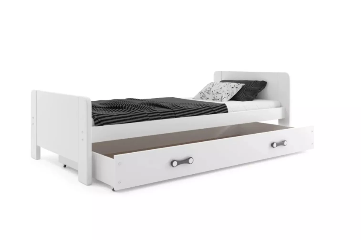 Jednolůžková postel 80x200 NASIA s matrací bude ideální volbou do každého studentského pokoje. Praktický úložný prostor vám umožní schovat ložní prádlo, sezónní oblečení nebo studijní materiál.