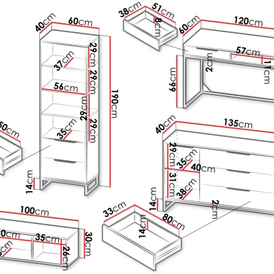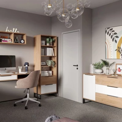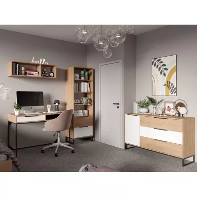 Vytvořte ve studentském pokoji ideální místo pro relaxaci i studium se sestavou FABENS. Ústředním prvkem této sestavy je psací stůl se zásuvkou a prostornou pracovní deskou, která poskytuje dostatek místa pro studium. Kombinovaná komoda, vysoký regál a závěsná police nabízí praktické úložné prostory pro studijní materiály, vystavení knih nebo oblíbených dekorací.