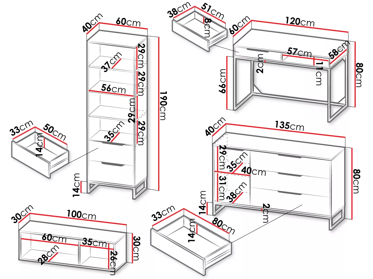 - kombinovaná komoda: 135/80/40 cm