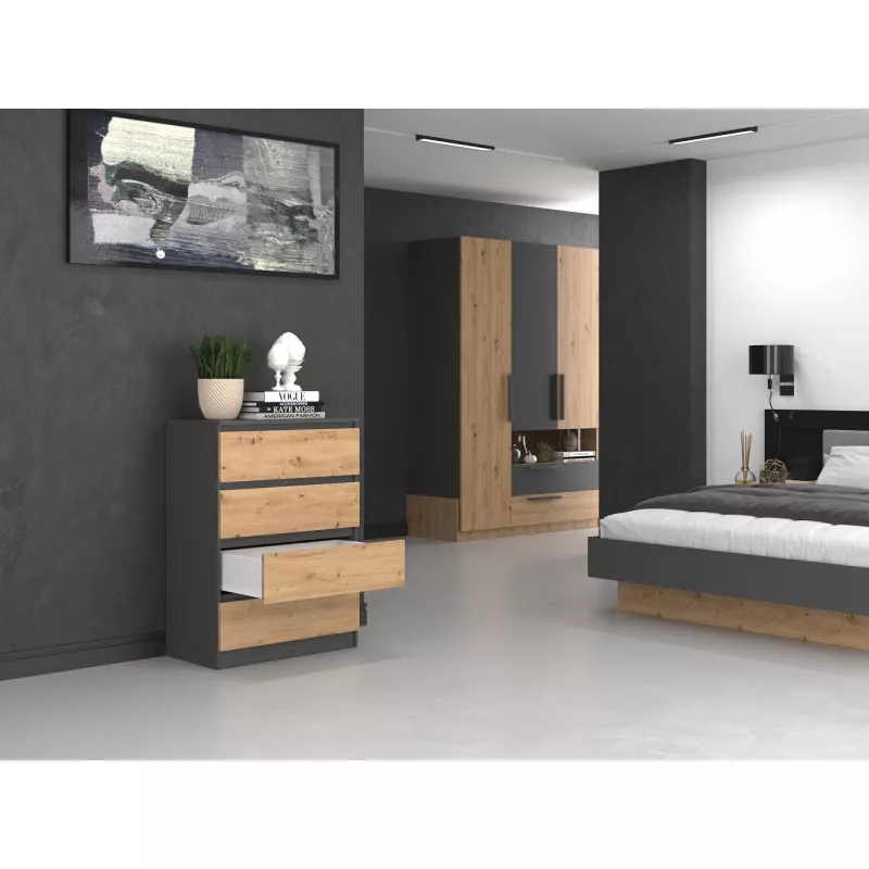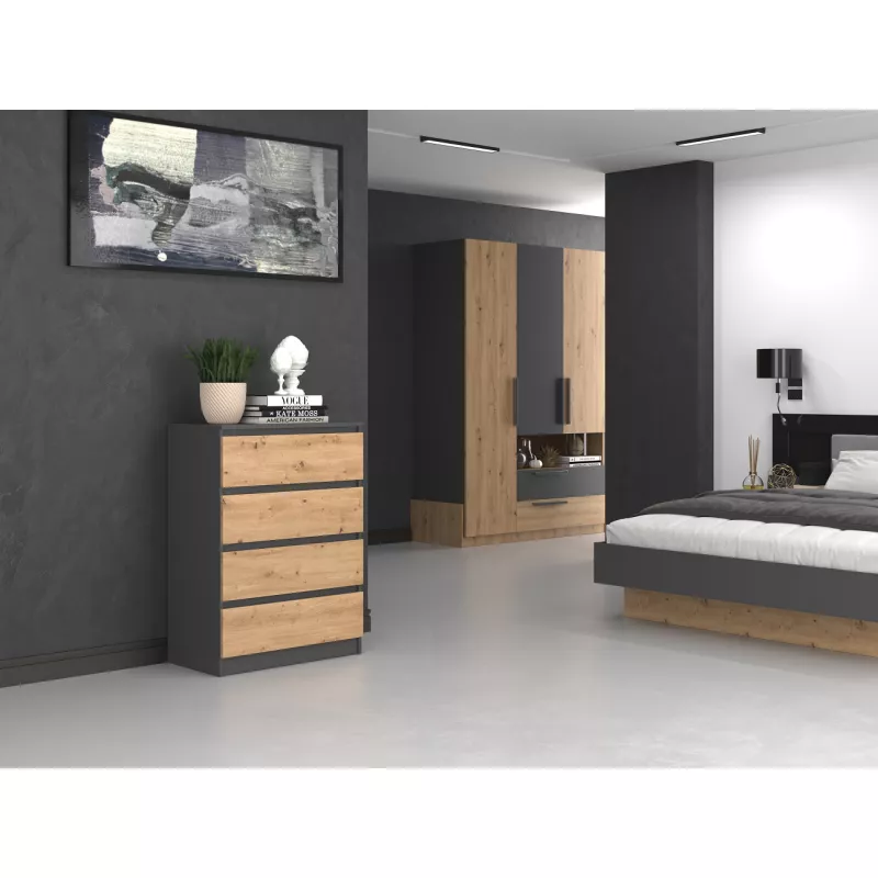 Úzká šuplíková komoda TAAVI - dub artisan / antracitová