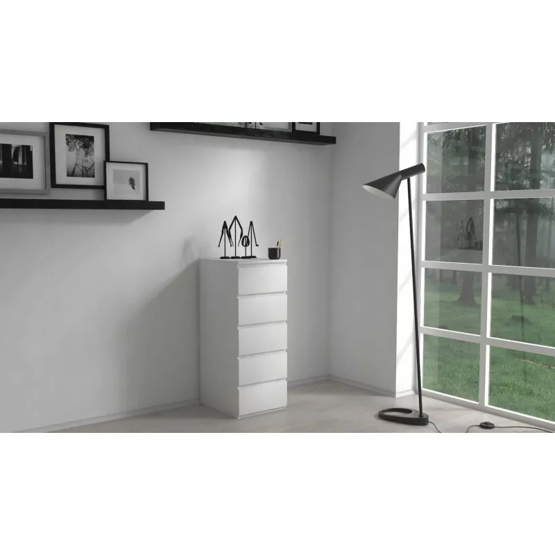 Úzká šuplíková komoda IVAR nabízí dostatek úložného prostoru, aniž by zabírala mnoho místa. Bezúchytková čela zásuvek zajišťují pohodlné používání a zdůrazňují moderní charakter nábytku.