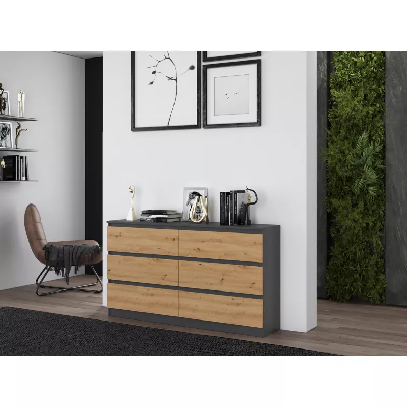 Široká šuplíková komoda TAAVI - dub artisan / antracitová
