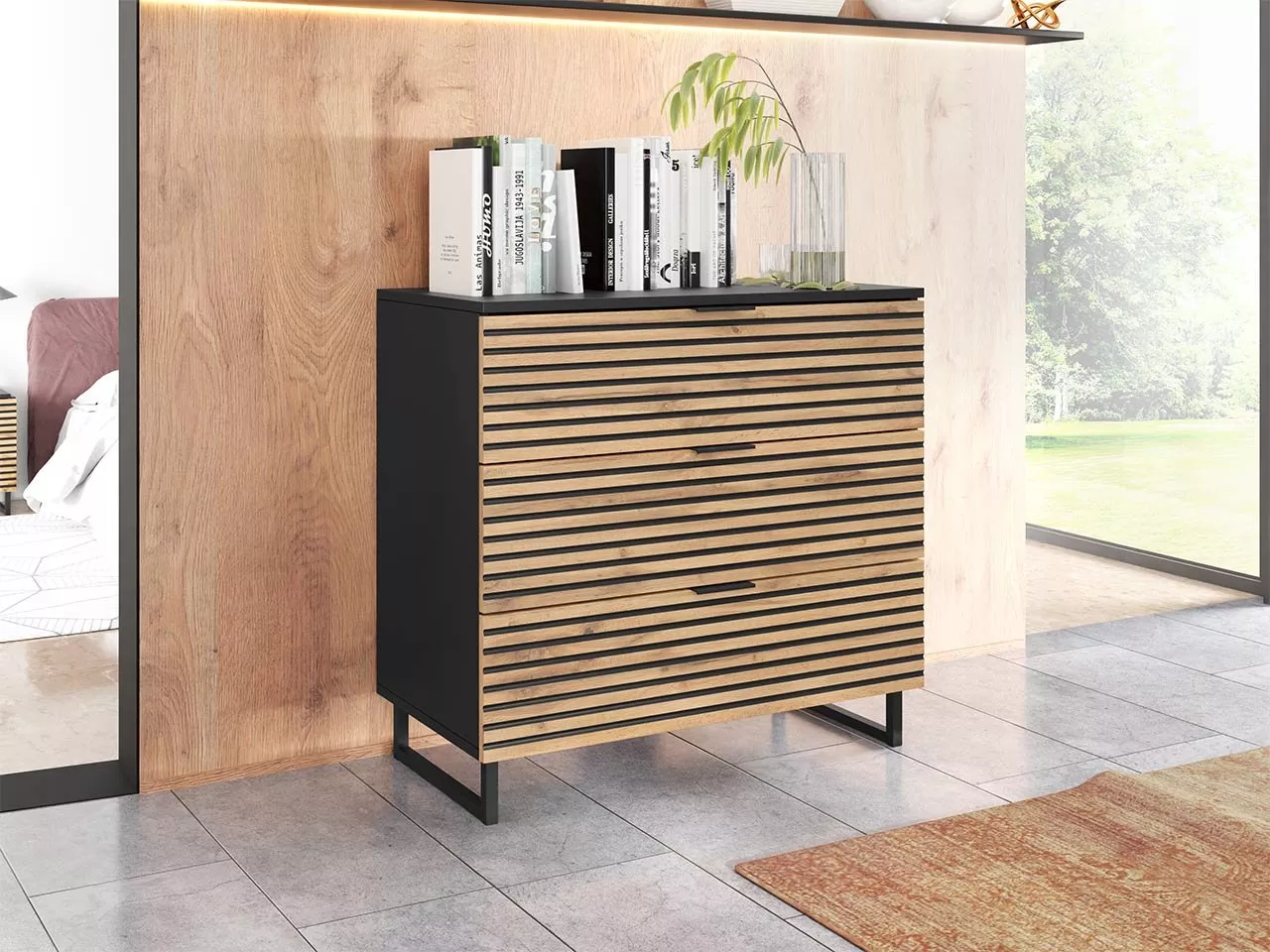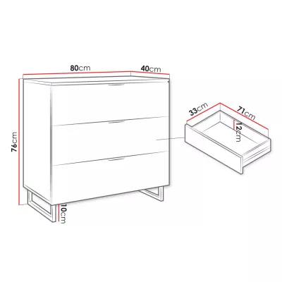 Úzká komoda se šuplíky PALACIOS - wotan / černá grafit