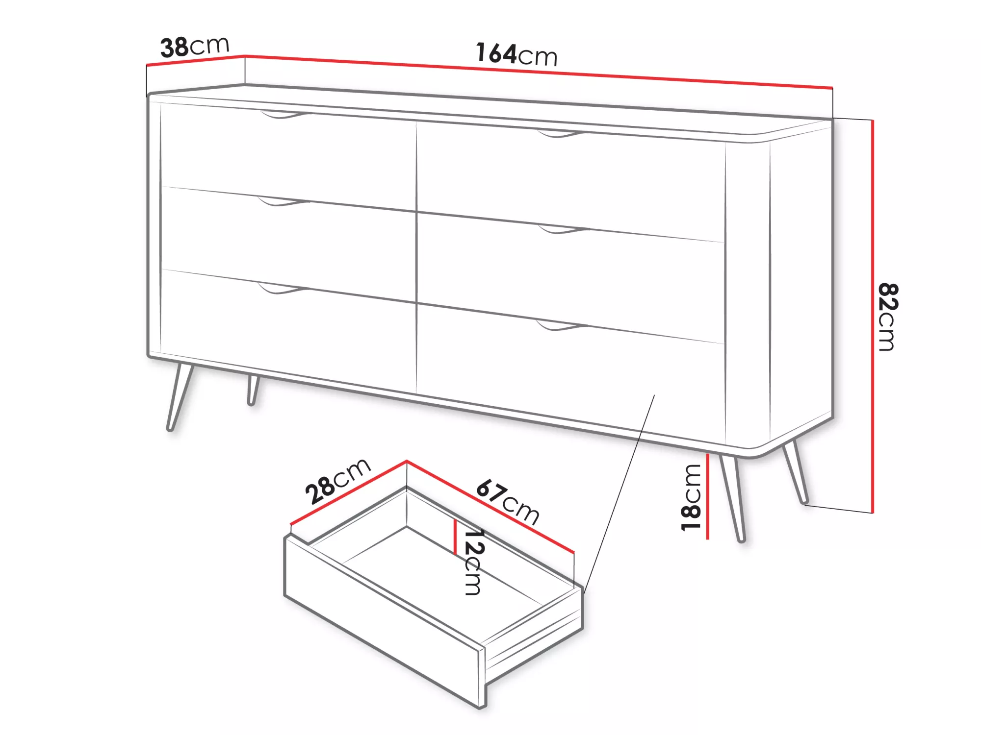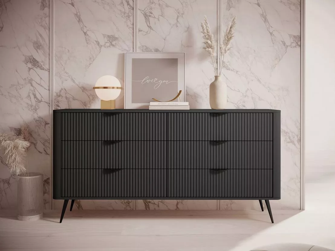 Oživte svůj domov s komodou CARTAGE, která spojuje moderní estetiku s funkčností. Bez ohledu na to, jestli hledáte místo pro uložení oblečení, elektroniky nebo jiných drobností, široká komoda se šuplíky vám nabídne dostatek úložného prostoru.