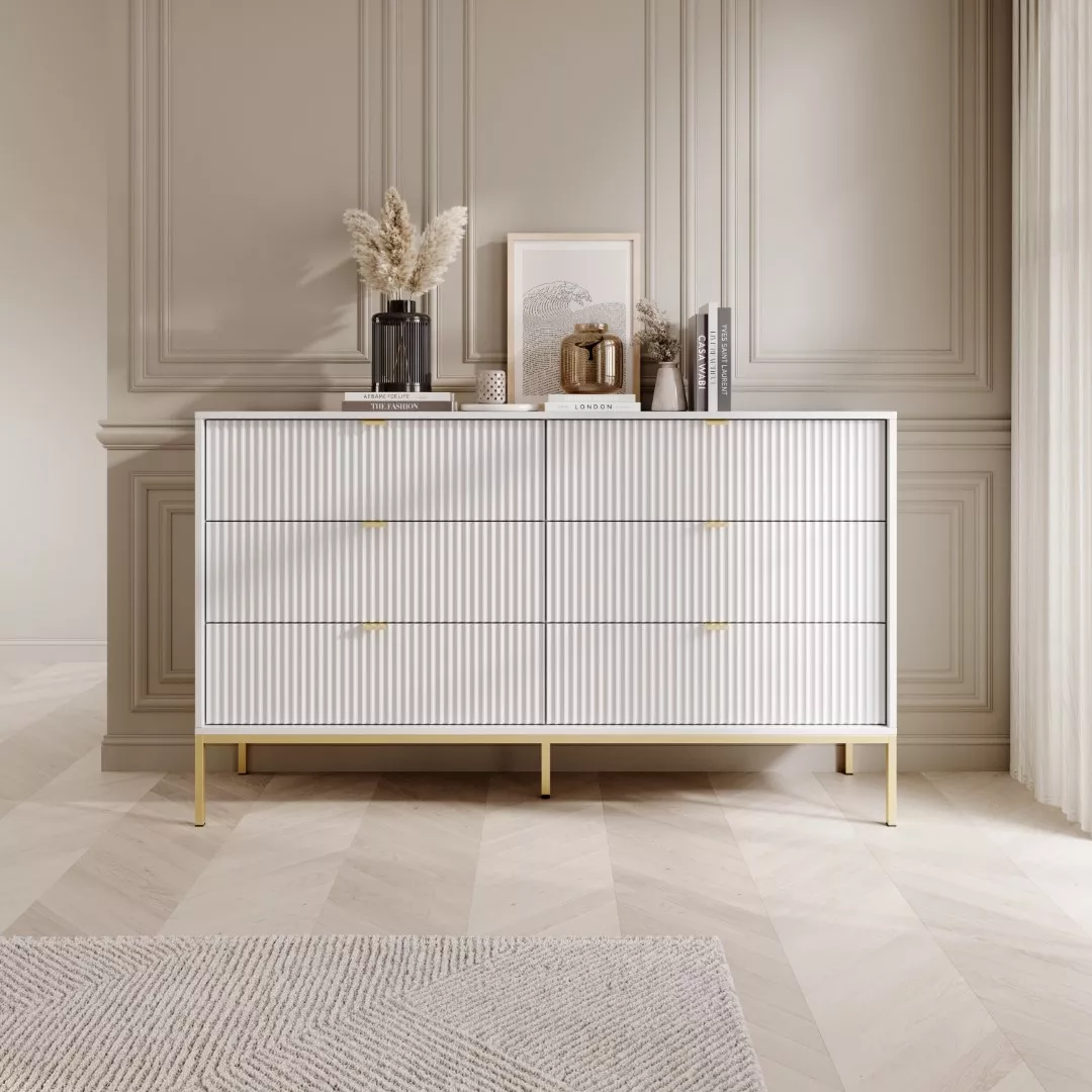 Široká komoda se zásuvkami MISHEEL - bílá / zlatá