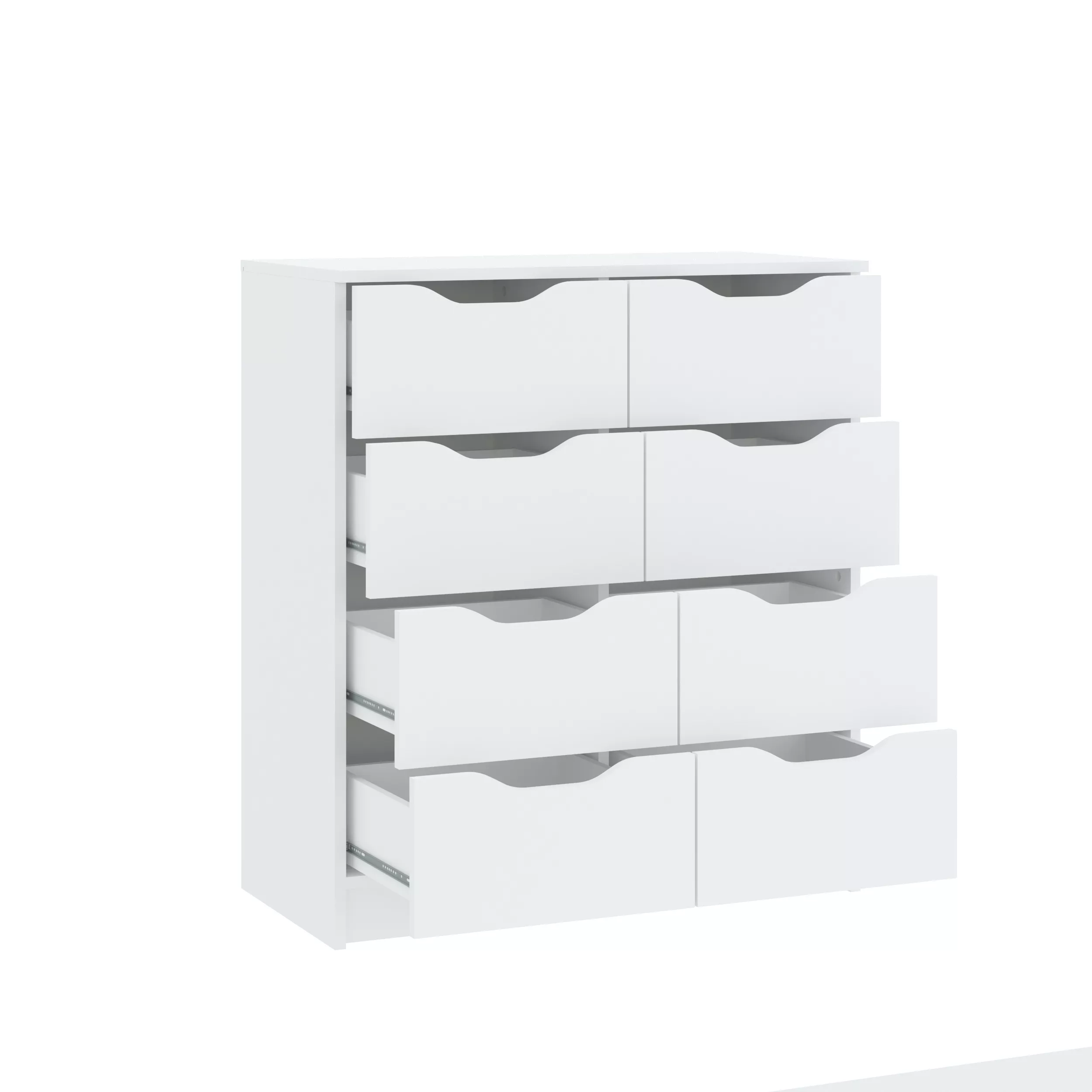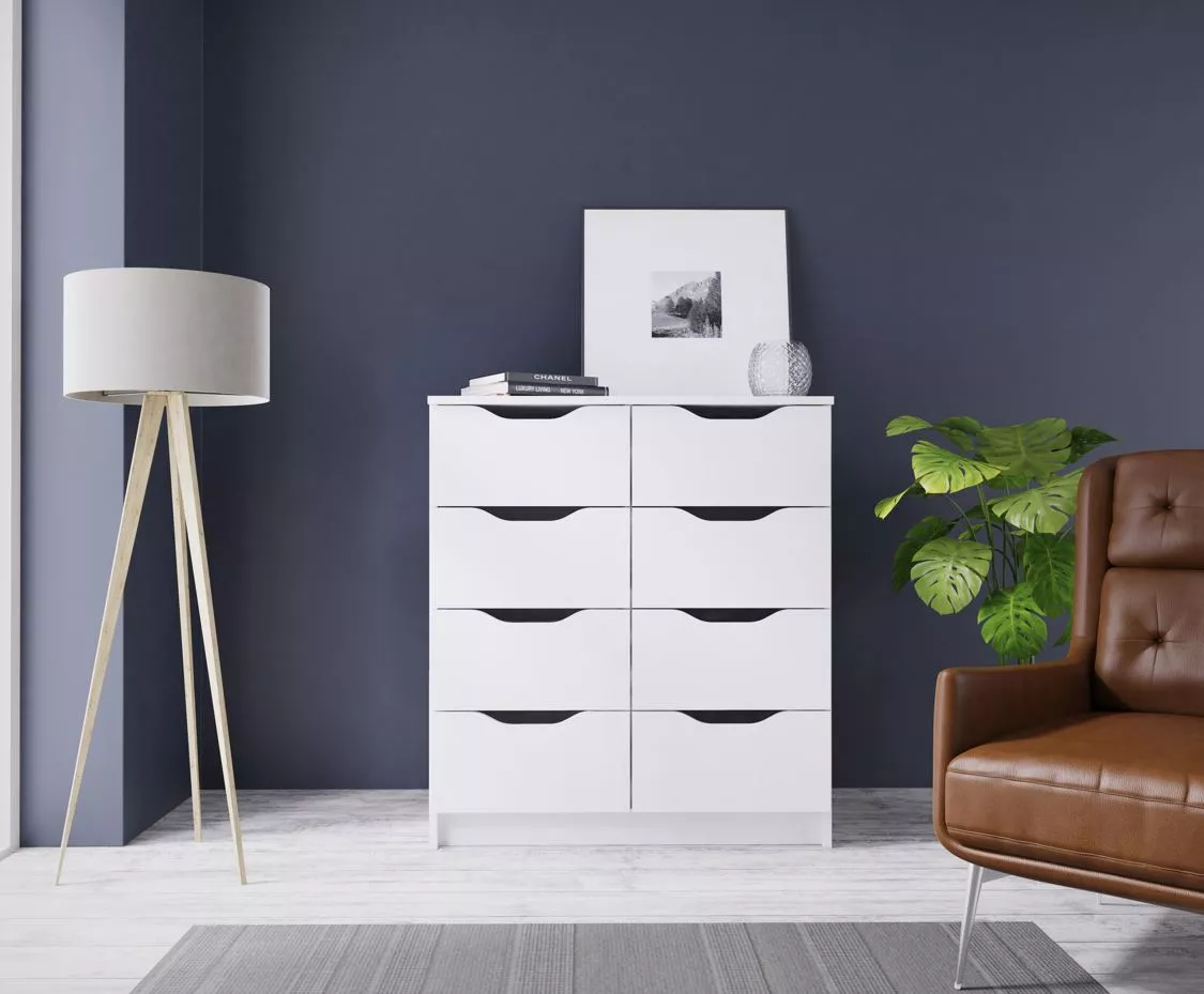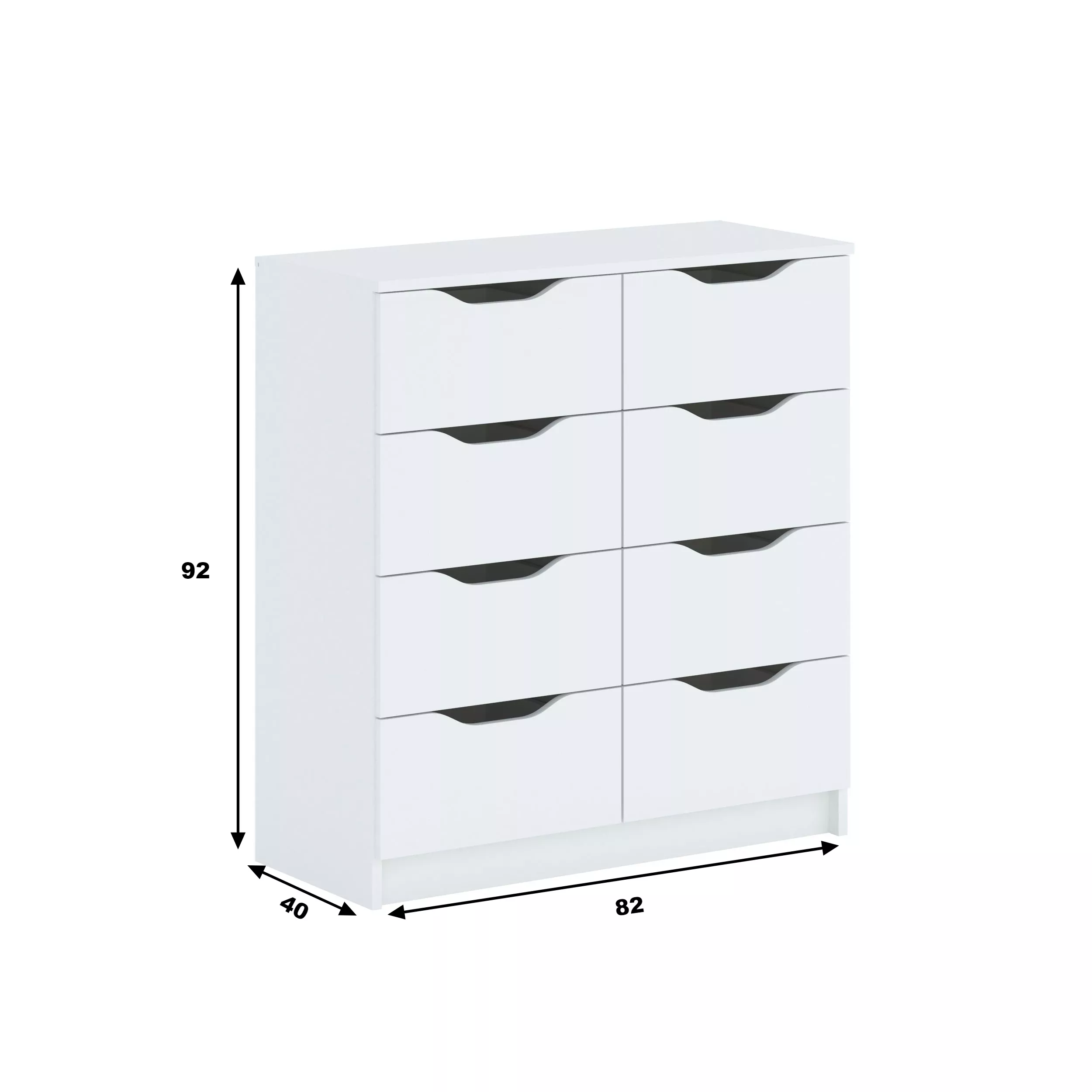 S úzkou zásuvkovou komodou LOWAKE 5 snadno vytvoříte stylově uspořádaný domov, který poskytuje praktické úložné prostory, a zároveň dodává interiéru moderní šmrnc. Komoda je vybavena 8 šuplíky s dostatkem místa pro všechno vaše oblečení a další předměty.