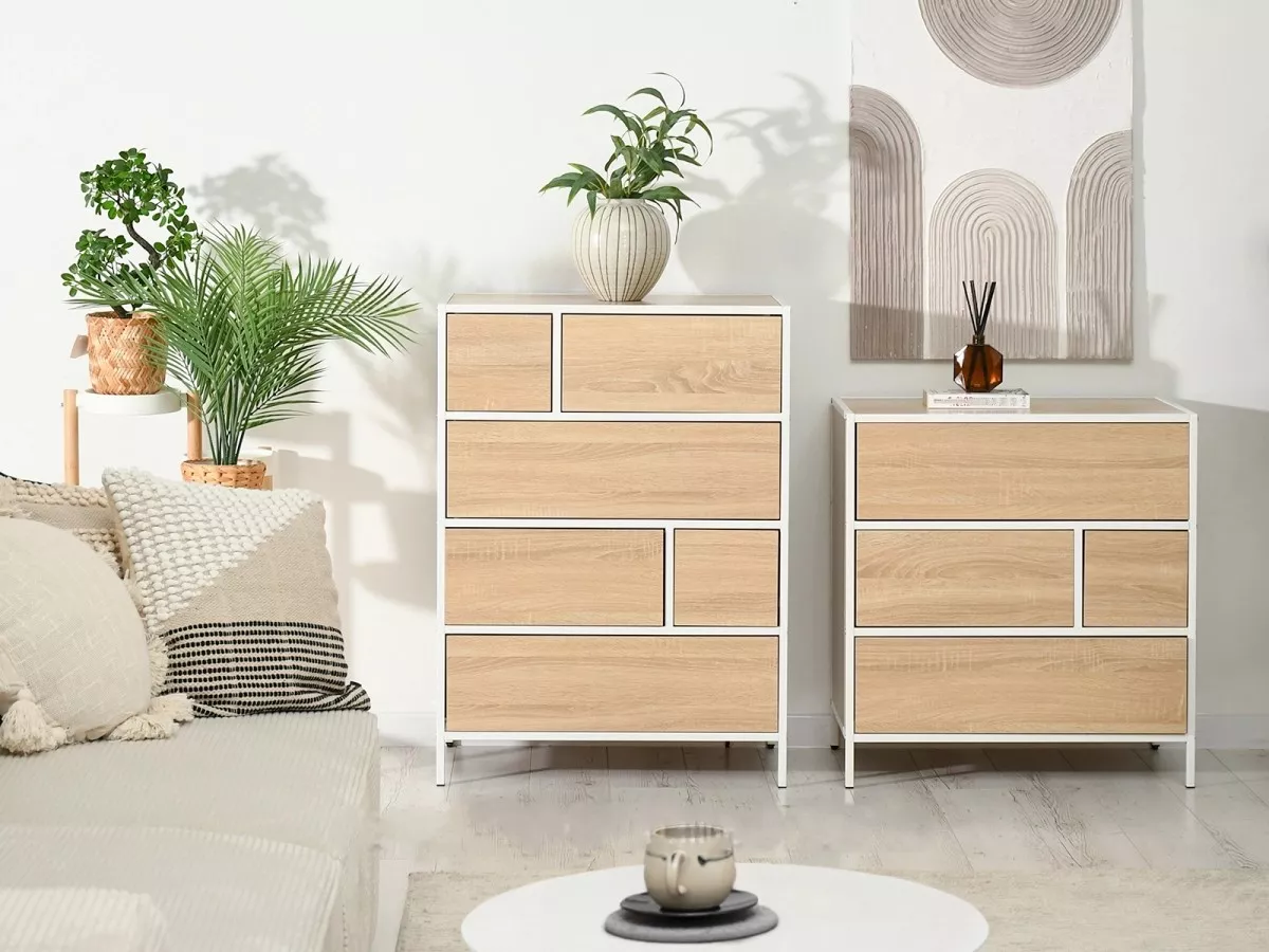 Šuplíková komoda MAIRA - bílá / dub sonoma