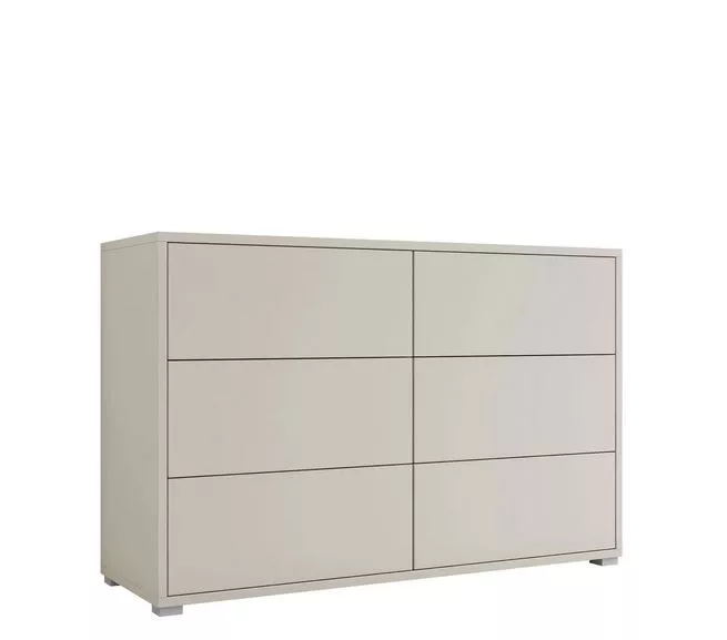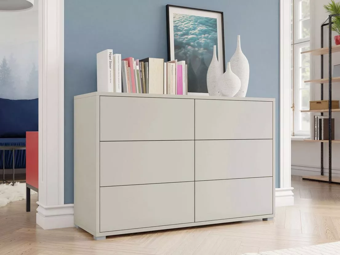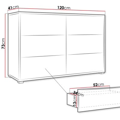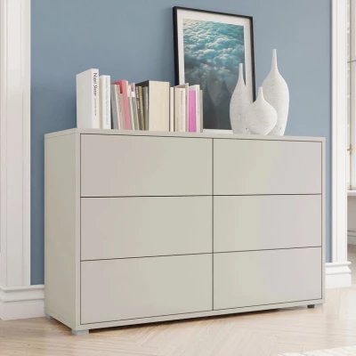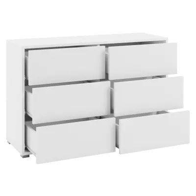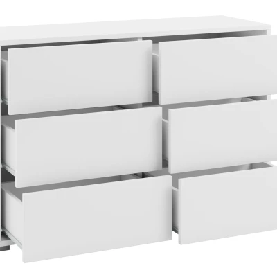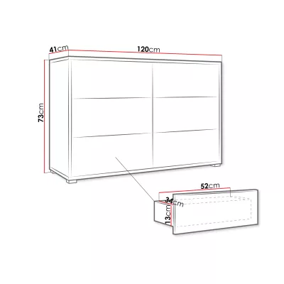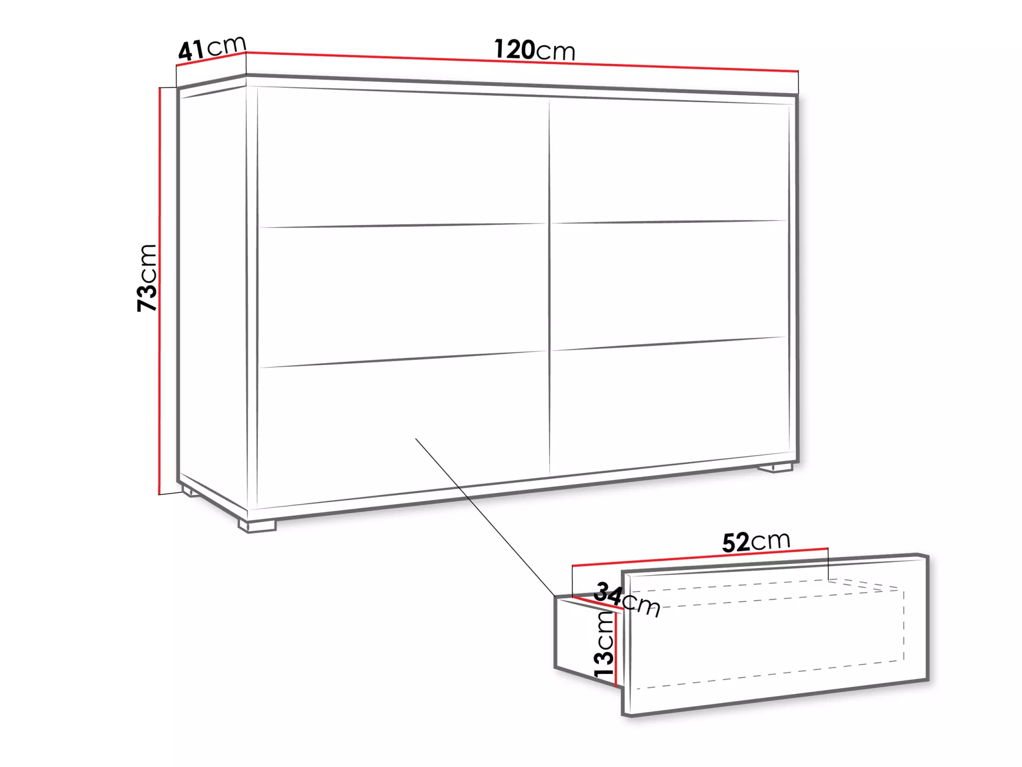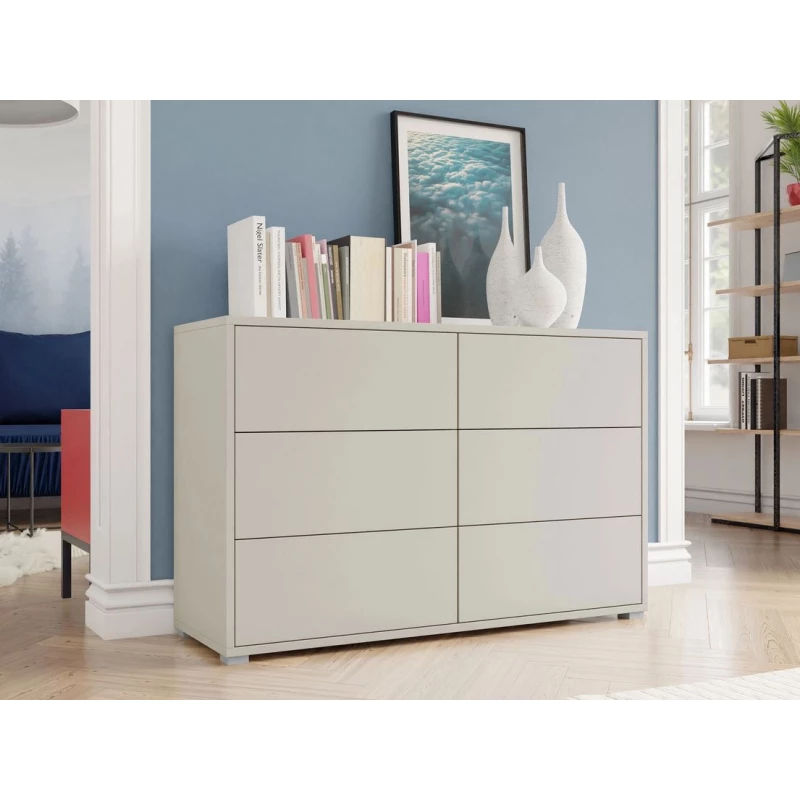 Komoda se zásuvkami FILA je praktickým řešením do ložnice, předsíně i obývacího pokoje. Pohodlný systém otevírání „PUSH TO OPEN“ vám usnadní každodenní používání. Hrany komody jsou zabezpečeny PVC dýhou, která zvyšuje odolnost nábytku.