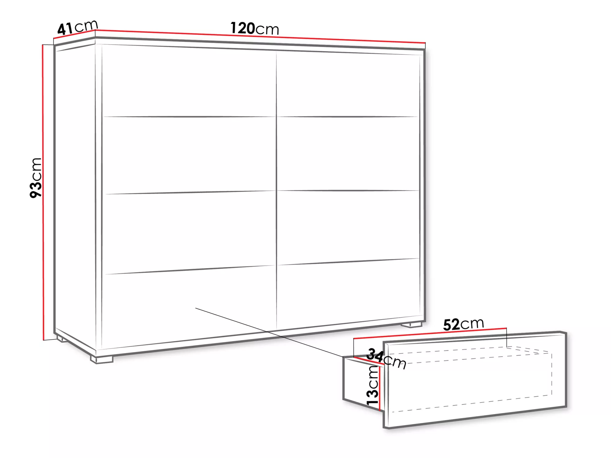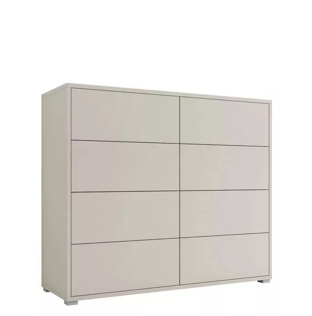 Velká komoda se zásuvkami FILA je praktickým řešením do ložnice, předsíně i obývacího pokoje. Pohodlný systém otevírání „PUSH TO OPEN“ vám usnadní každodenní používání. Hrany komody jsou zabezpečeny PVC dýhou, která zvyšuje odolnost nábytku.