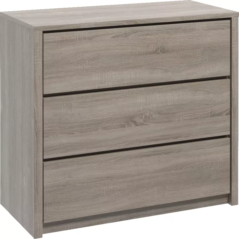 Komoda se šuplíky FEREIRA je ideálním úložným prvkem do ložnice či obývacího pokoje. Pyšní se 3 prostornými šuplíky s bezúchytkovými čely, která zdůrazňují jednoduchý charakter nábytku.