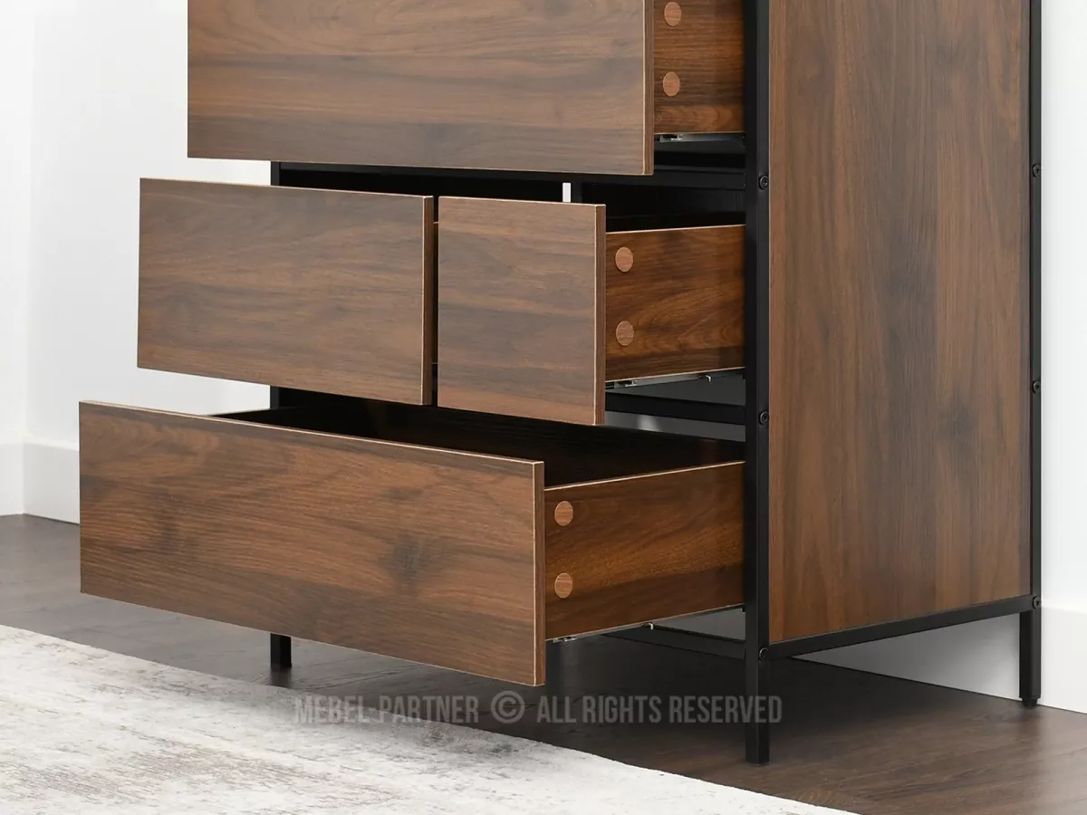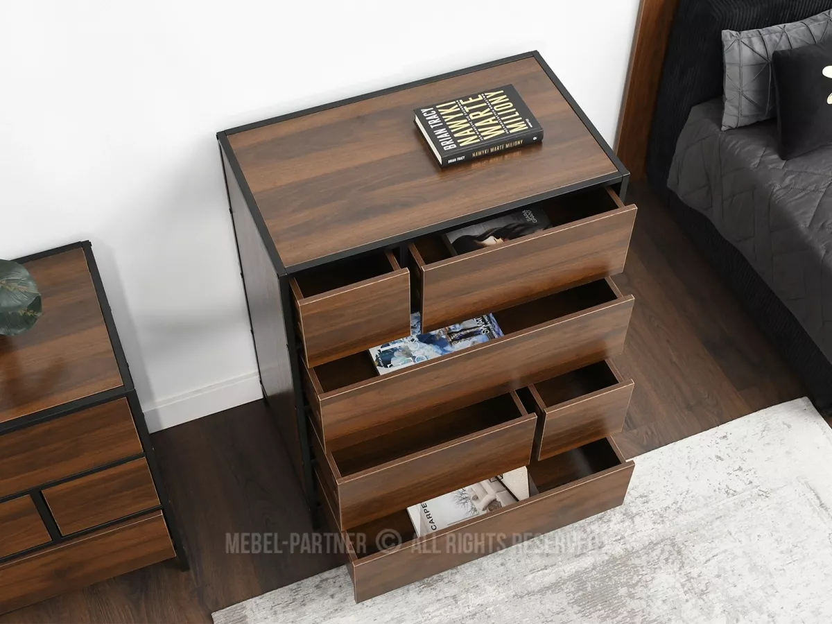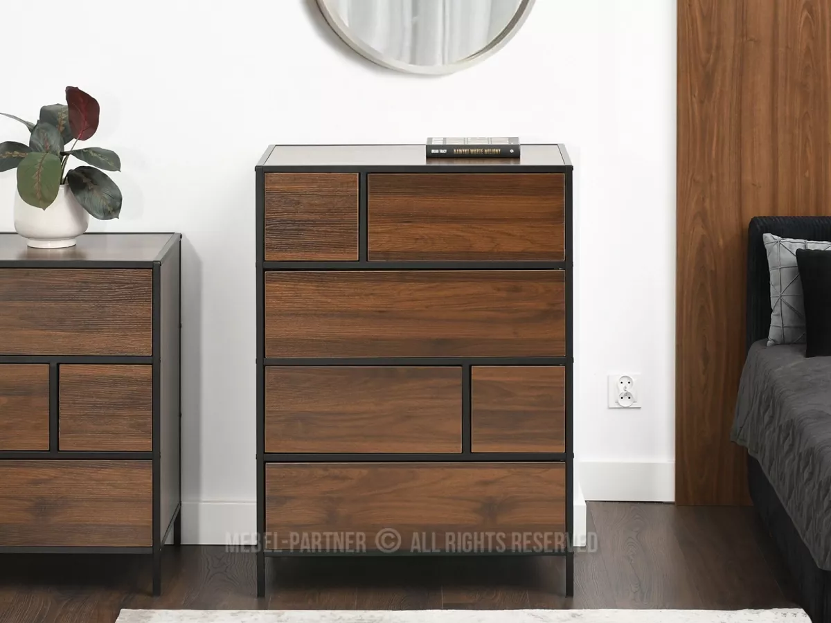 Šuplíková komoda MAIRA díky svému zdobení v podobě černých kovových linií spojuje eleganci a moderní styl. Příjemná barevná kombinace komody dodá interiéru útulný pocit.